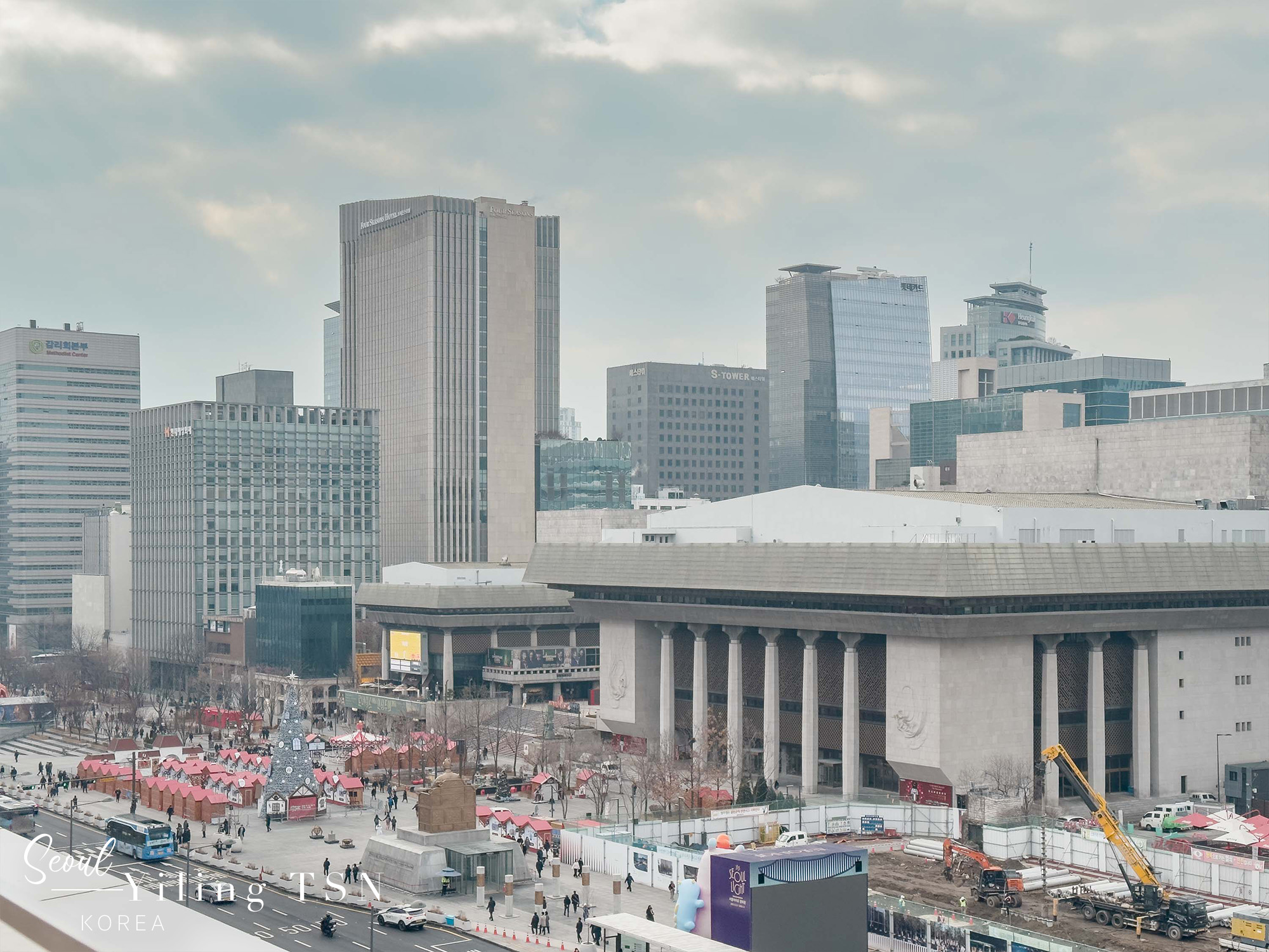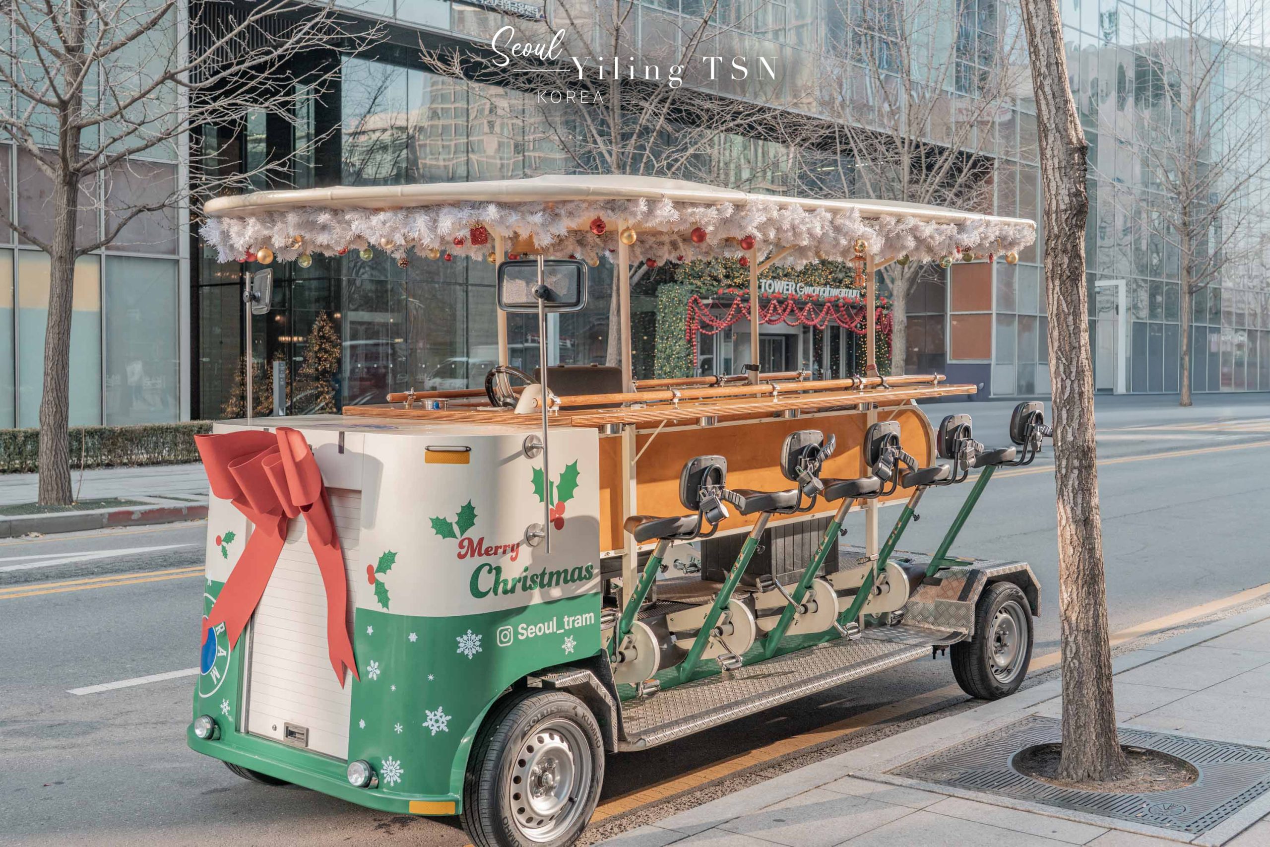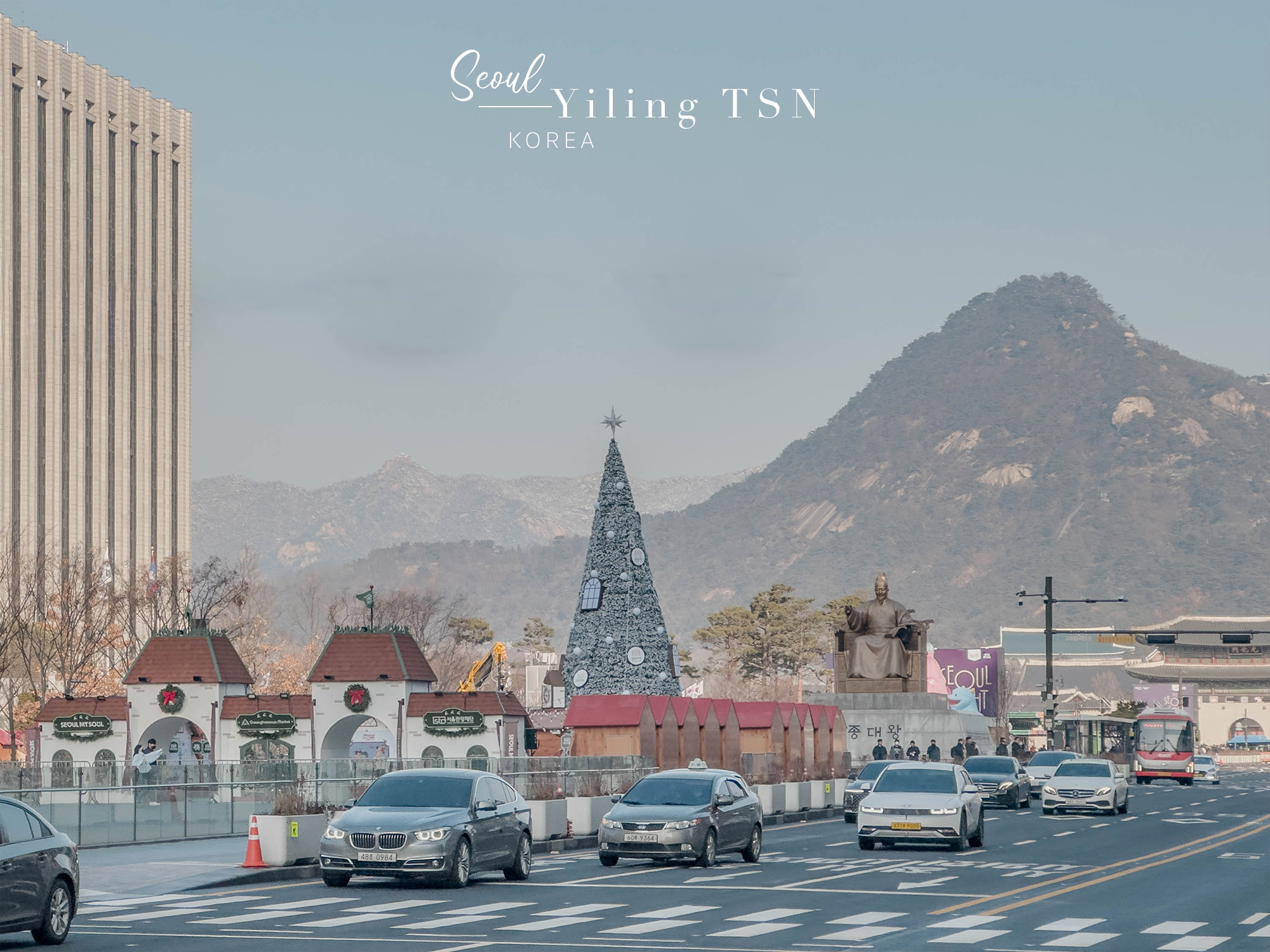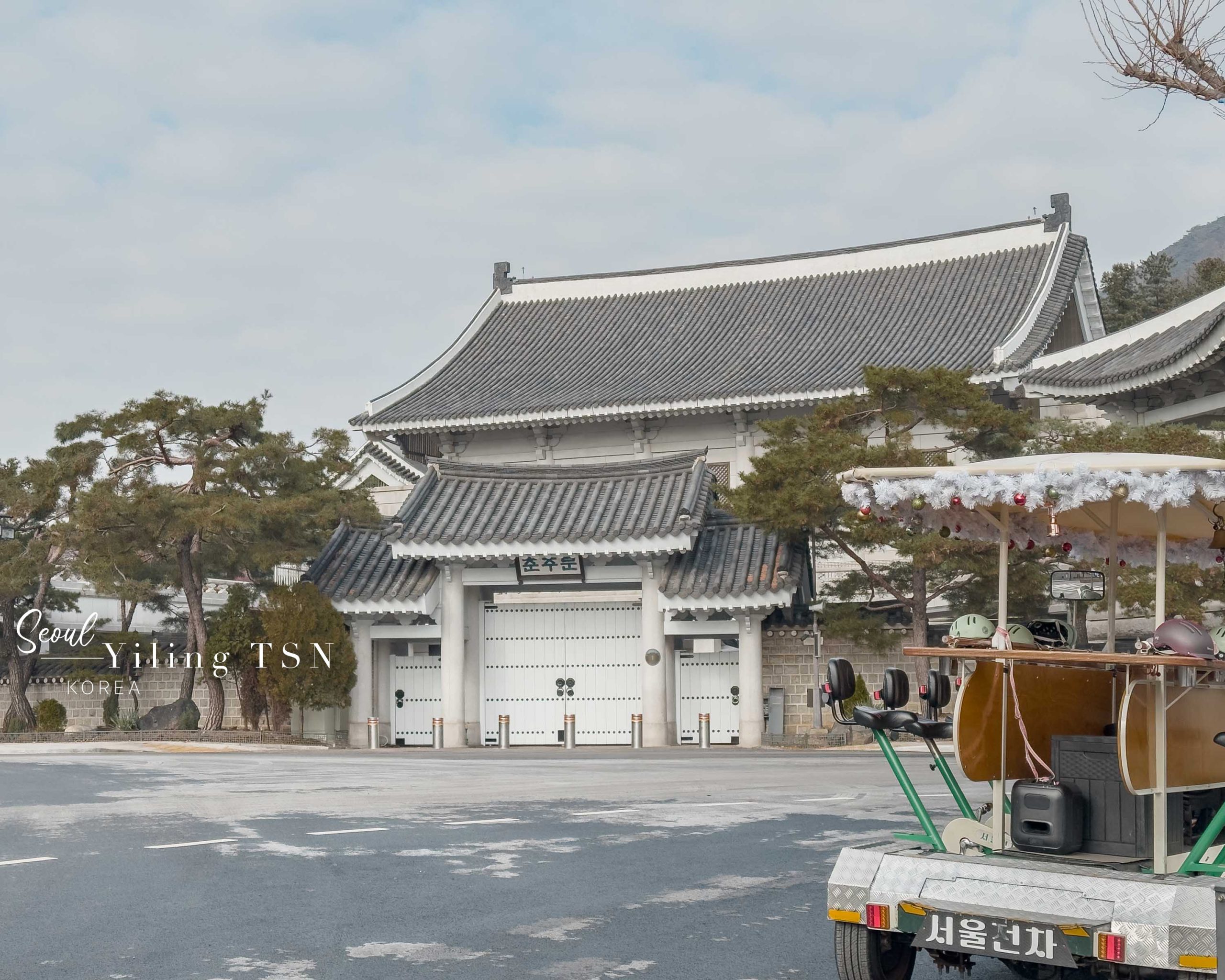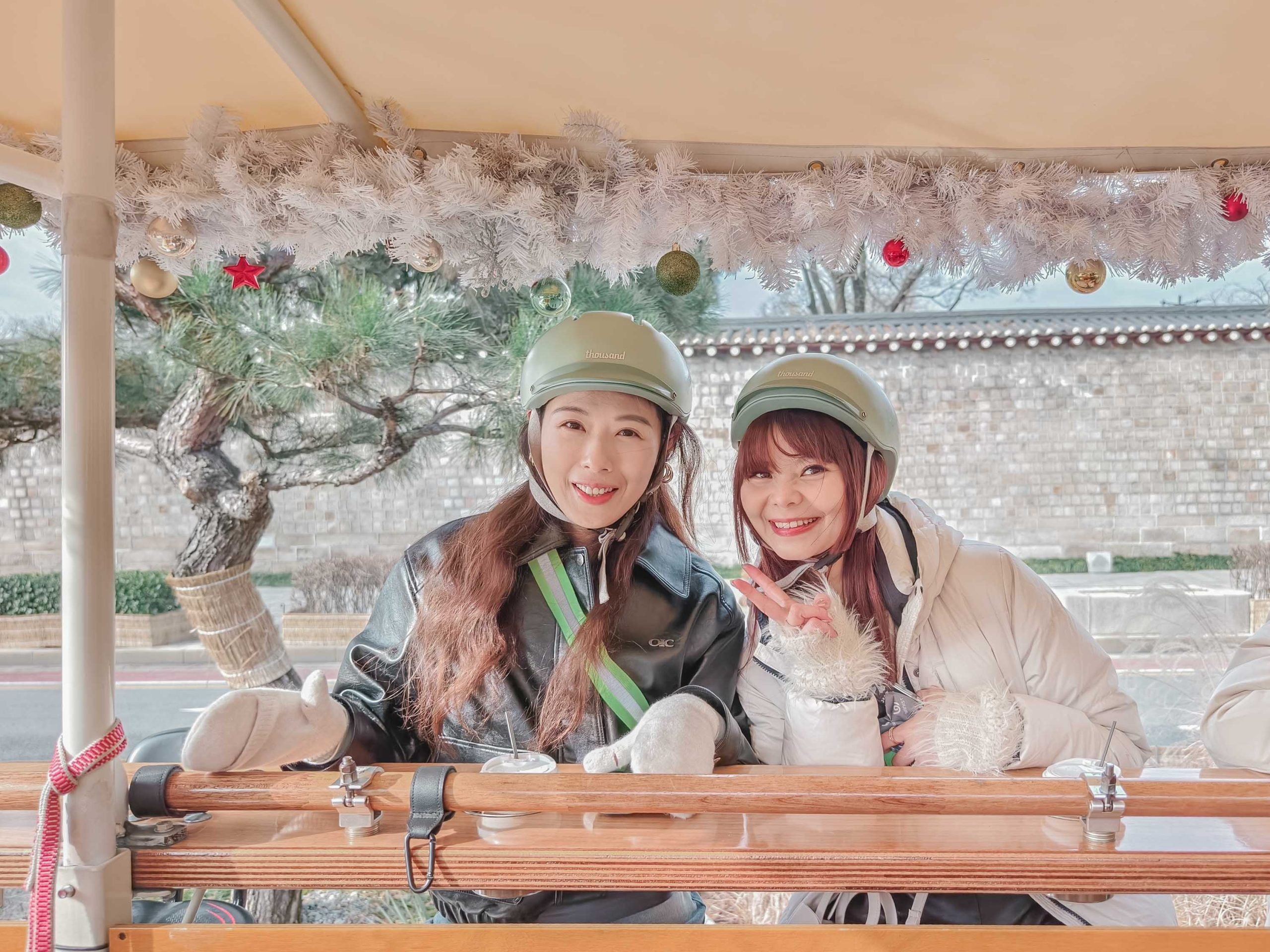 一路騎到了景福宮周邊,正值12月期間,也在光化門廣場上見到了聖誕樹裝飾,古今美學奇妙碰撞,冬季限定的視覺饗宴。