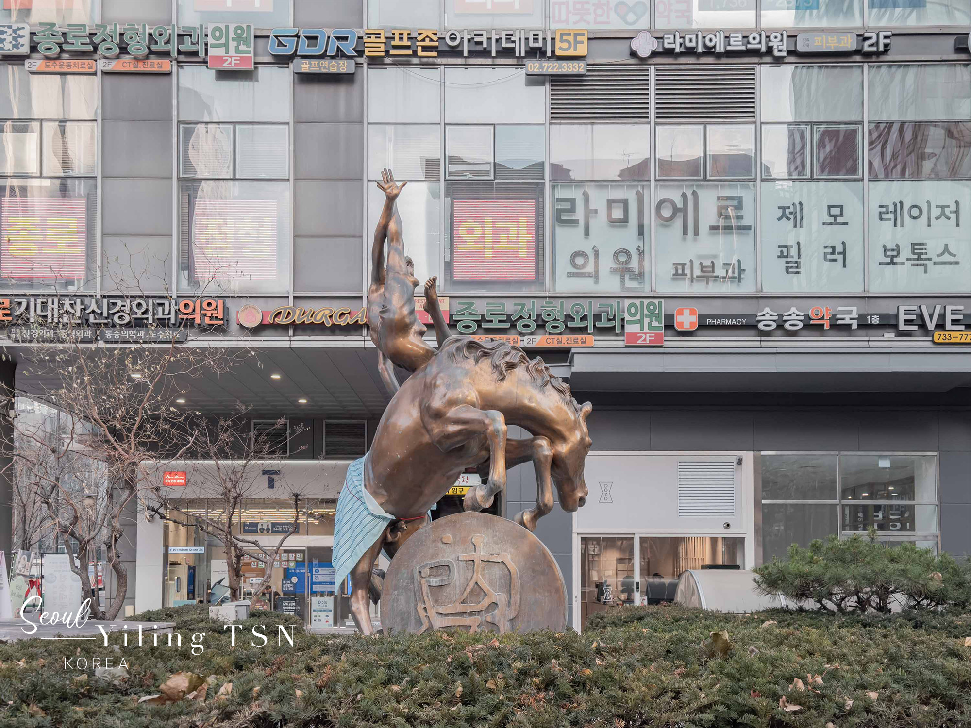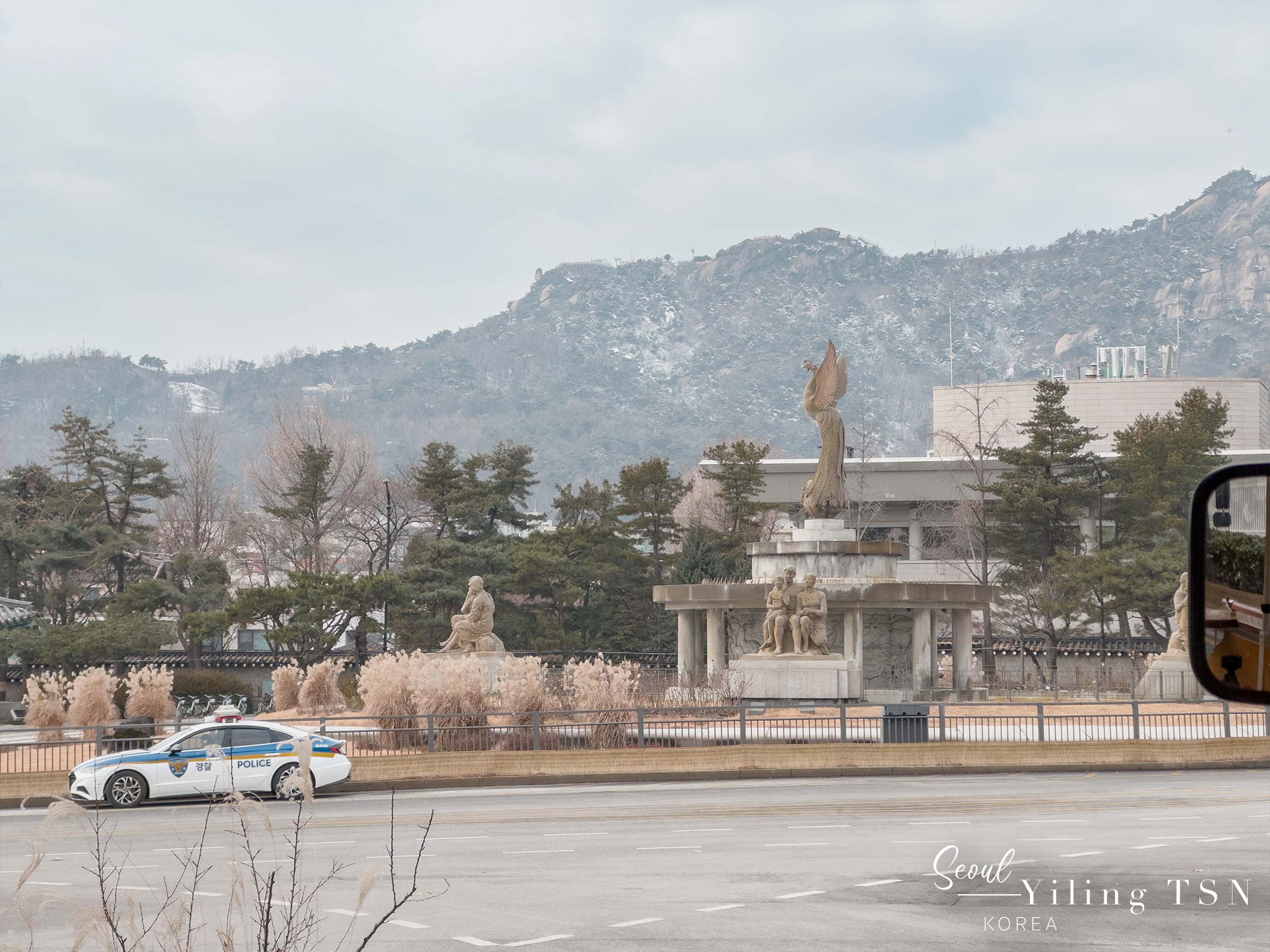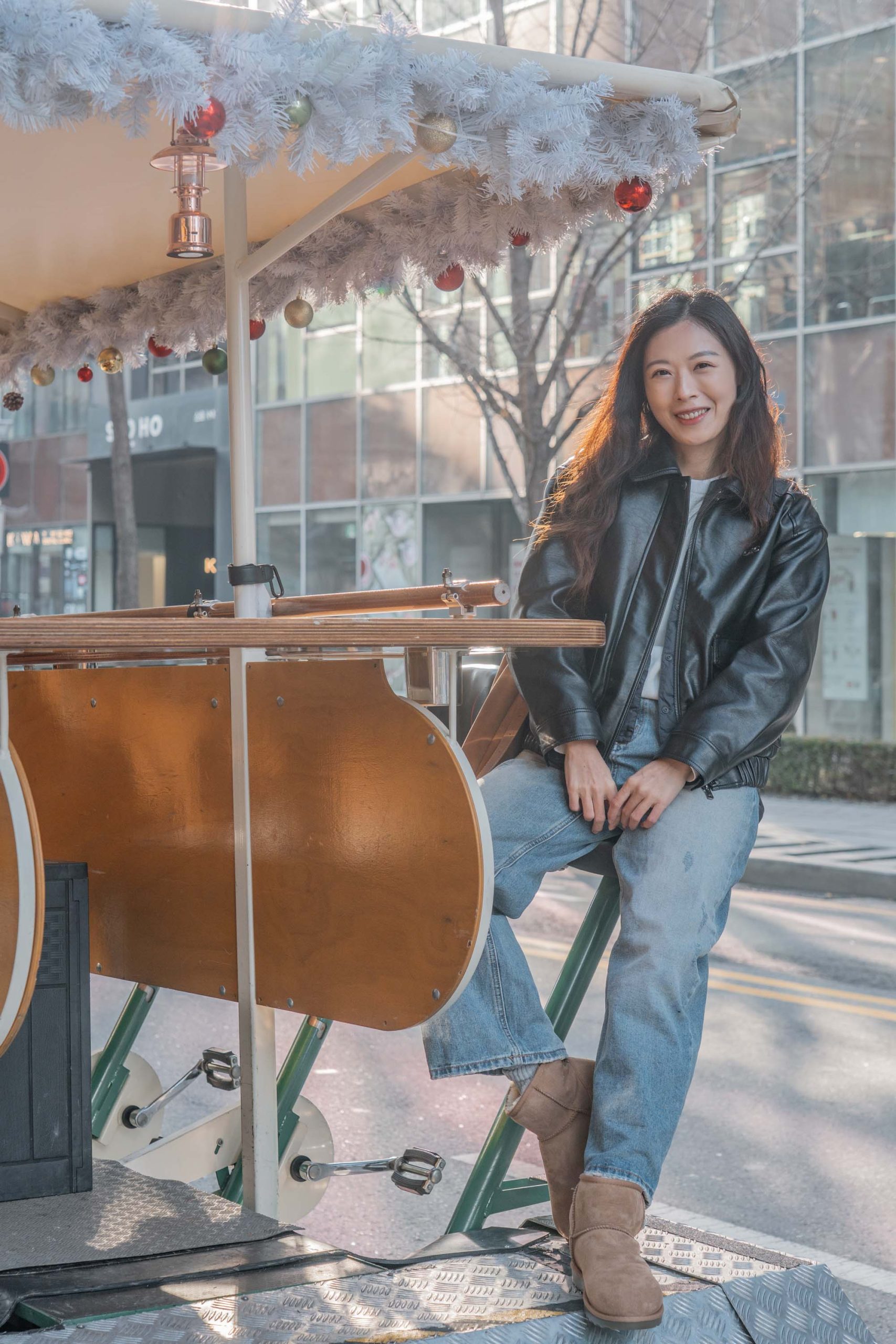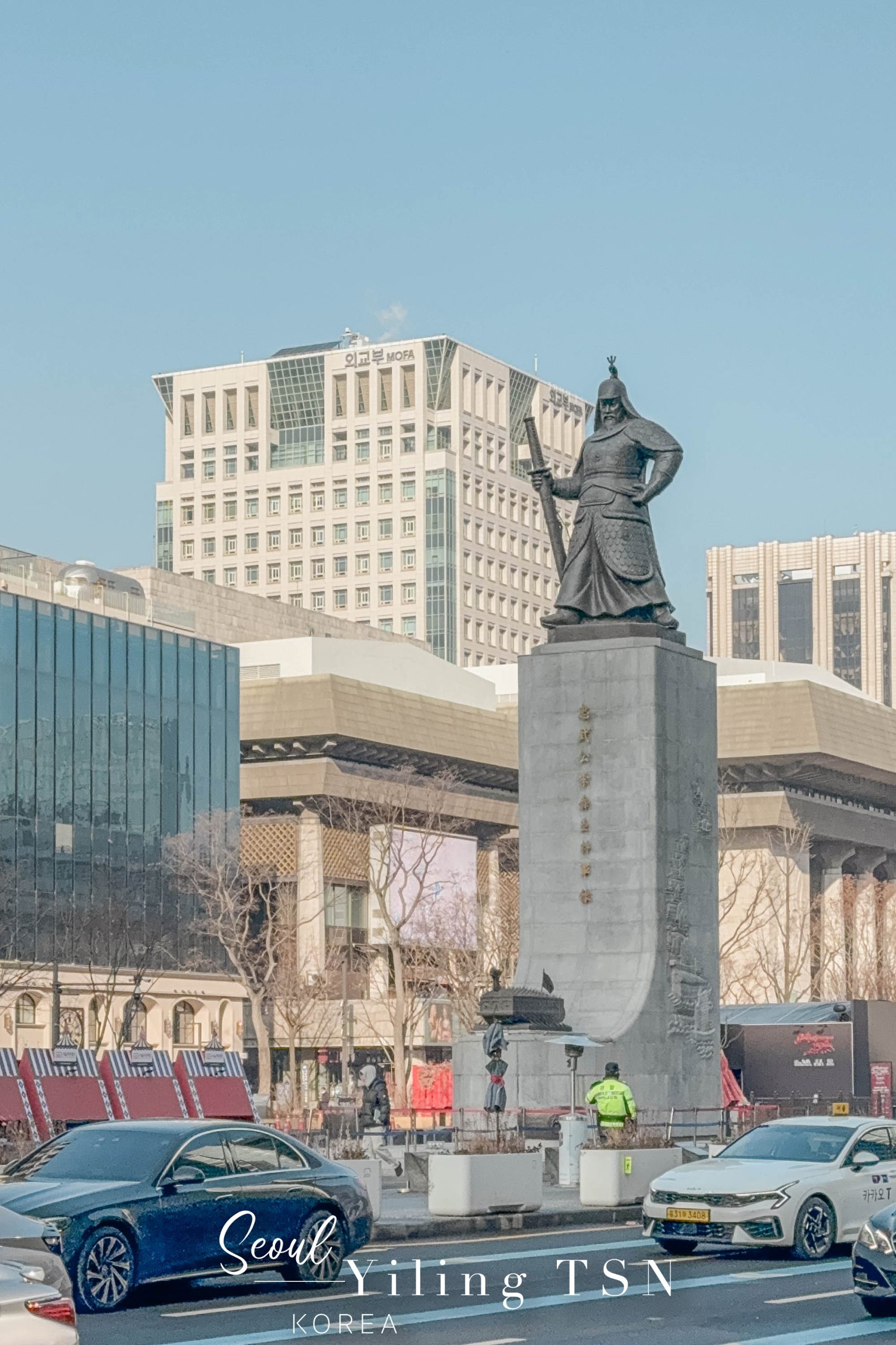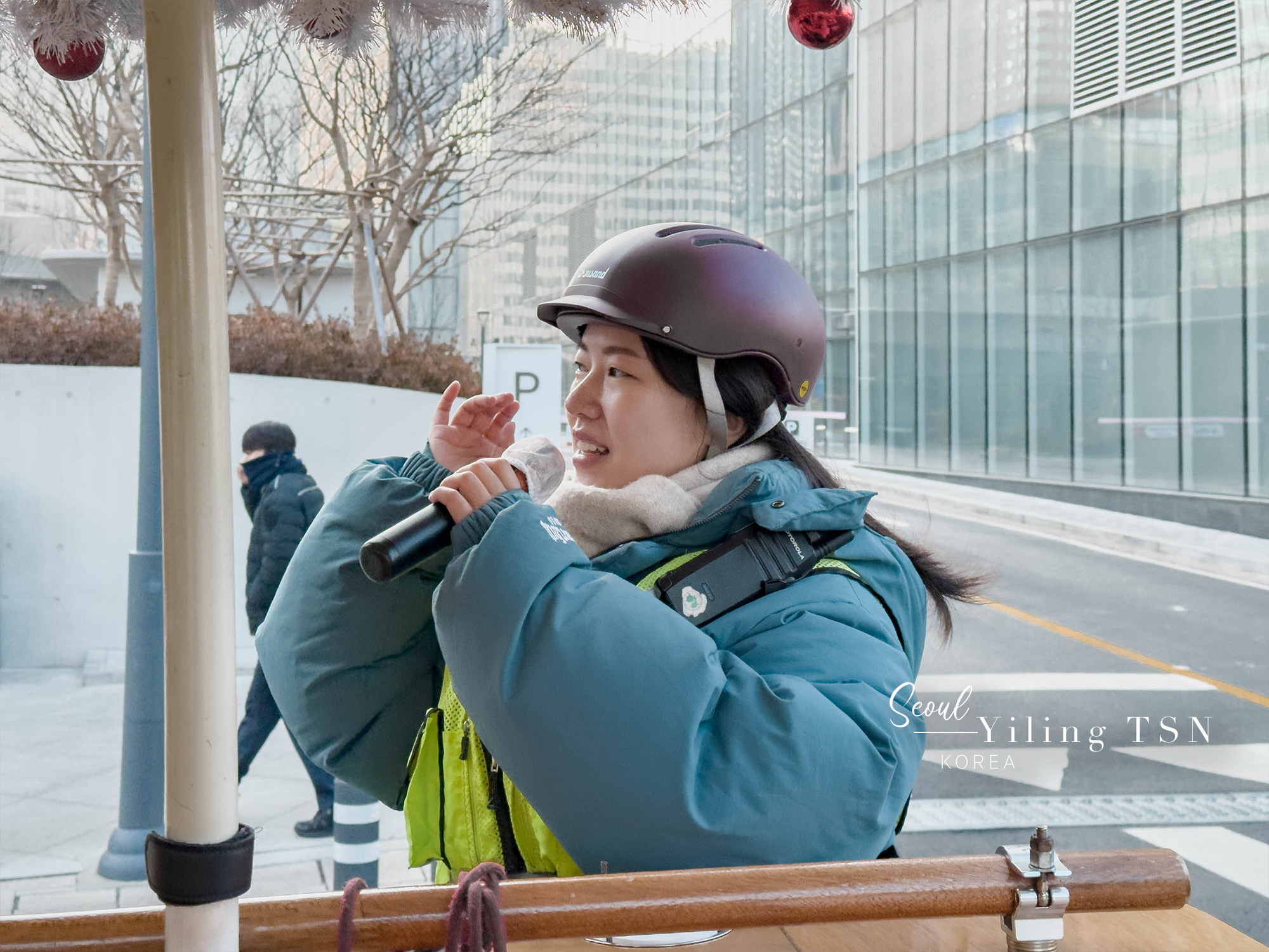 一路騎到了景福宮周邊,正值12月期間,也在光化門廣場上見到了聖誕樹裝飾,古今美學奇妙碰撞,冬季限定的視覺饗宴。
