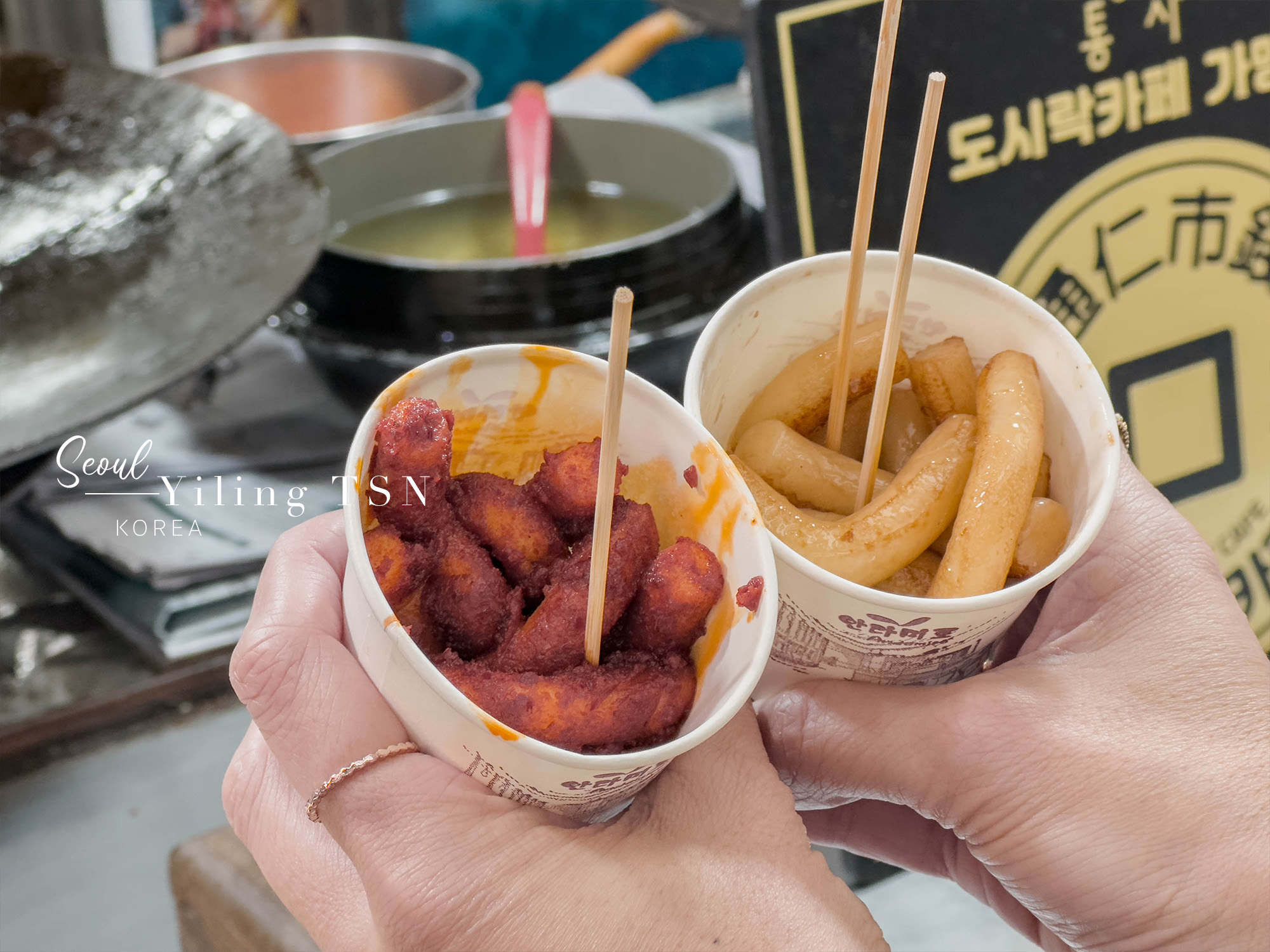 第一次吃到純粹的醬油炒年糕,跟較常見的紅通通辣炒年糕很不一樣,那股油香滋味好涮嘴。除此之外還有類似我們台灣雙胞胎的炸甜甜圈,撒上爽快糖粉,是我螞蟻國王的愛。