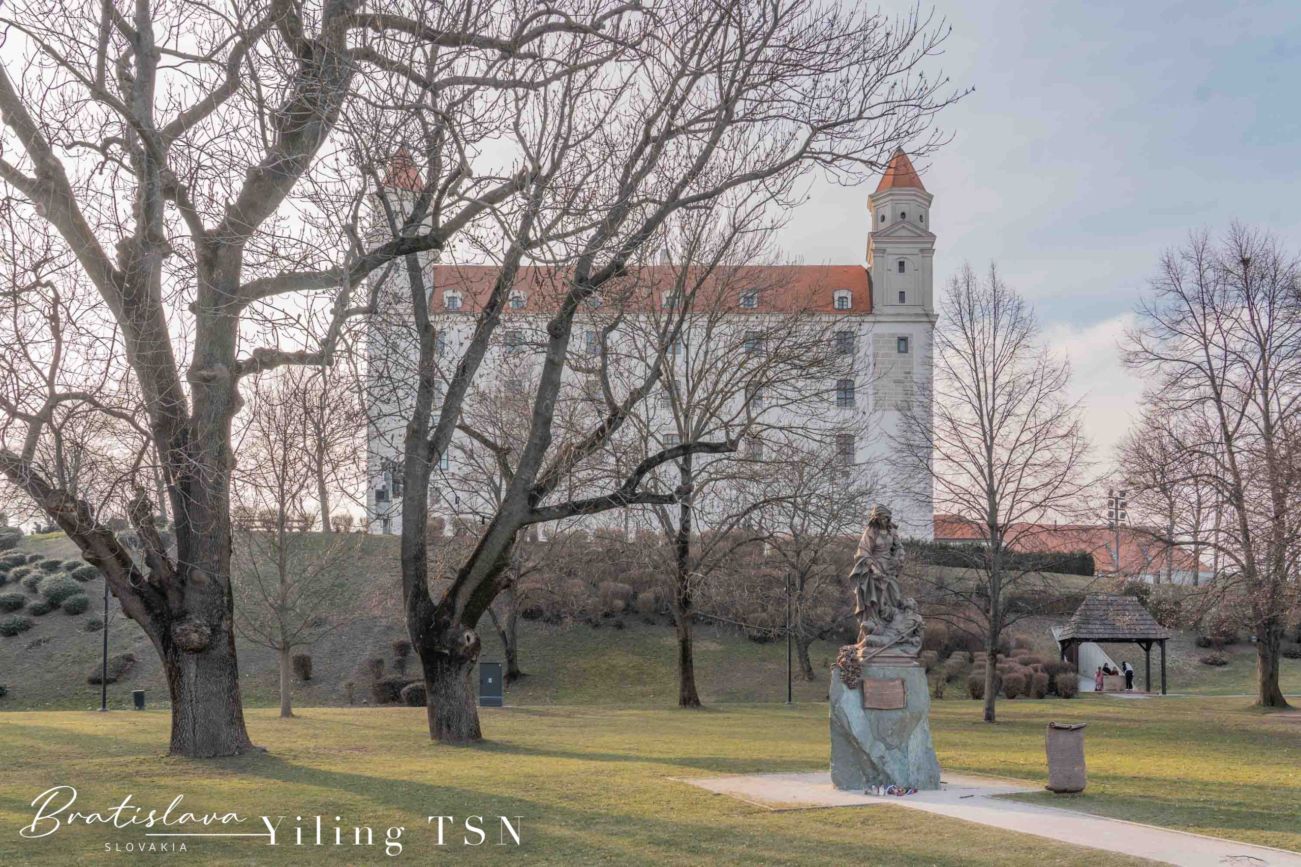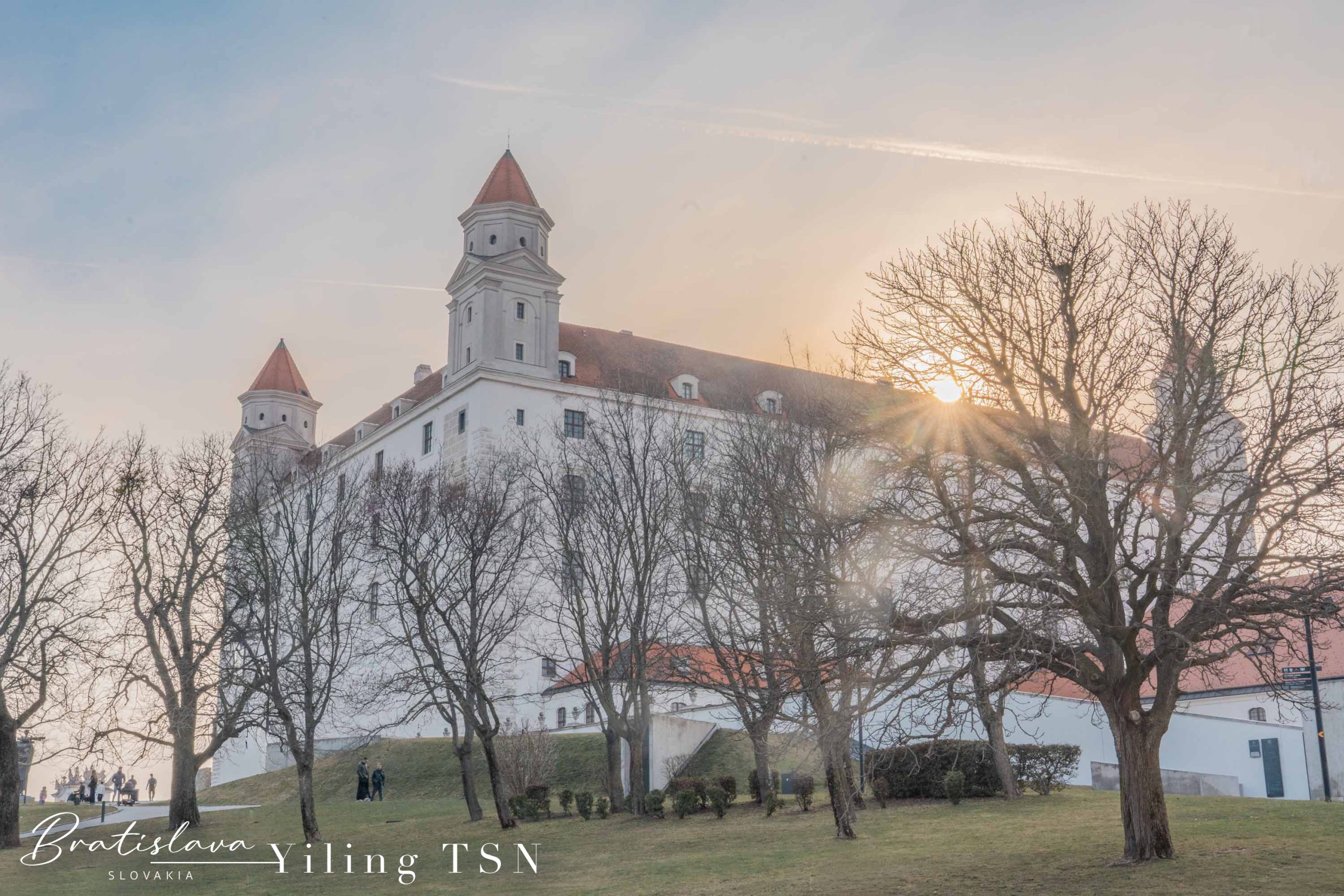 第一站先來到矗立在山丘上的「布拉提斯拉瓦城堡(Bratislava Castle)」,四方形淺色建築角落有著四座尖塔,常被形容是一張倒立的白色桌子,外圍庭園和巴洛克式花園都是免費開放的。