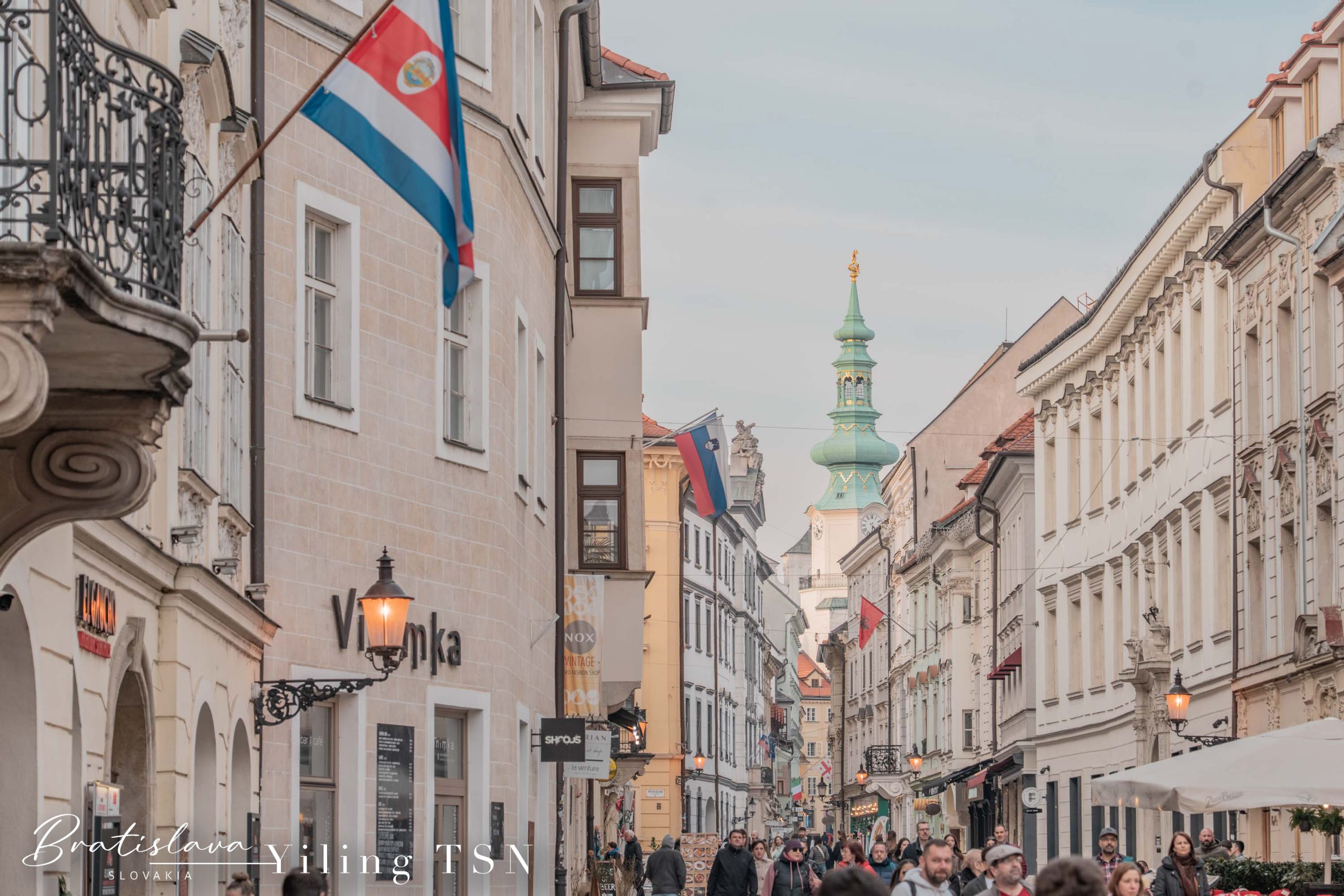 走進舊城區,經過高達51公尺的「邁克爾門(Michael’s Gate)」,穿越這座保留至今的中世紀城門,就等於正式踏入了布拉提斯拉瓦城市最熱鬧的核心地帶。