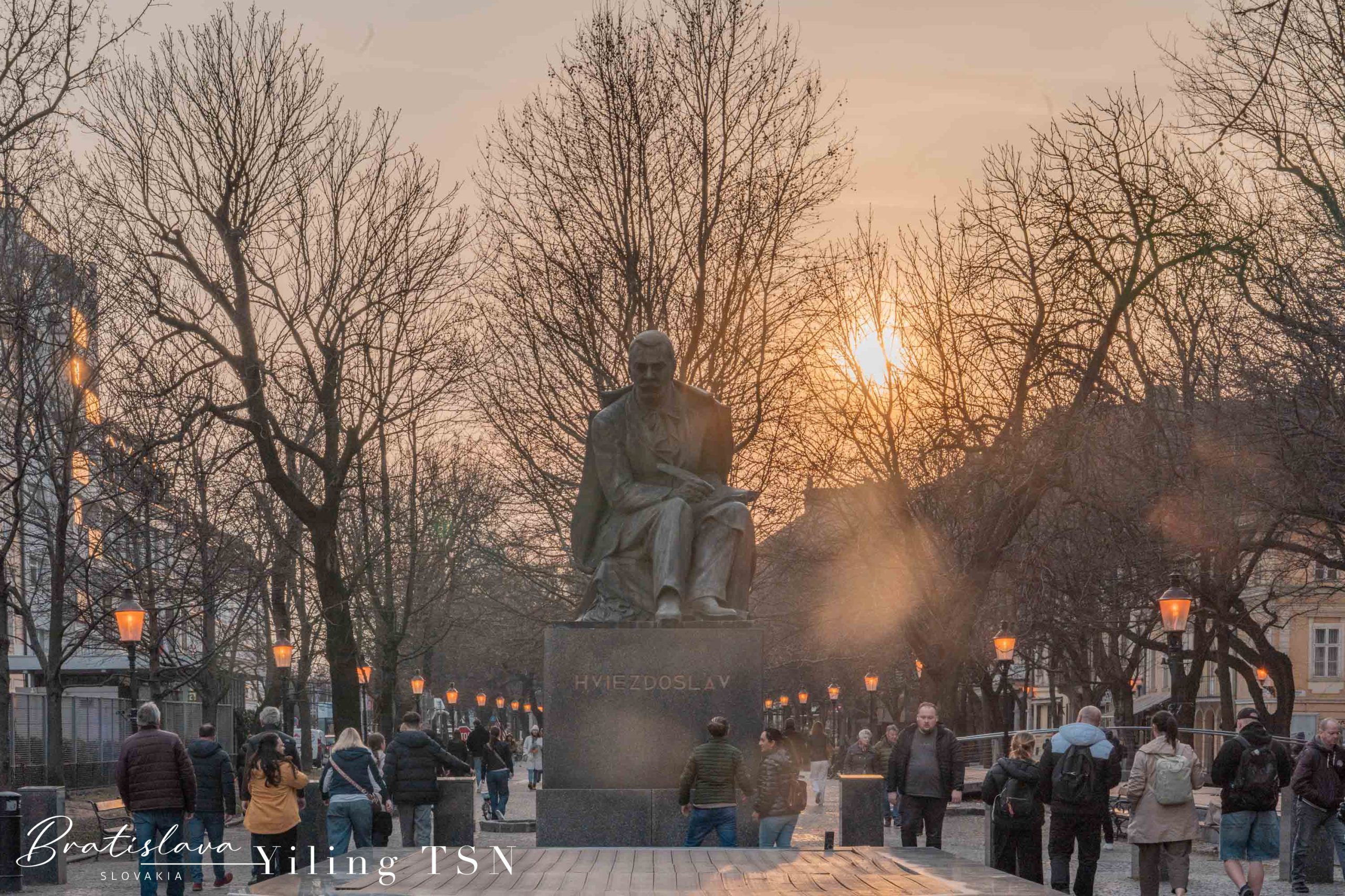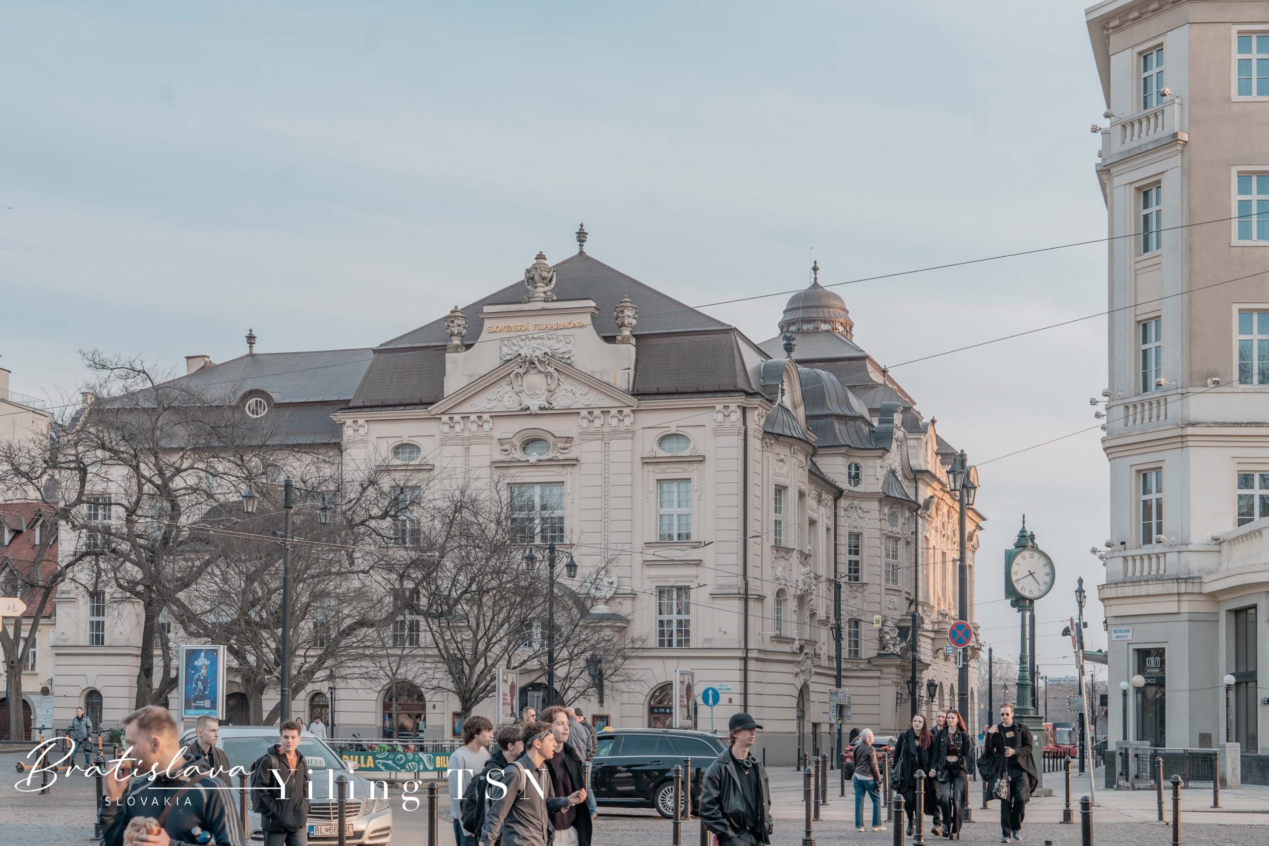 「赫維茲多斯拉夫廣場(Hviezdoslavovo Námestie)」是布拉提斯拉瓦最大的徒步廣場,兩側綠意盎然,底端則是華麗的「斯洛伐克國家劇院(Slovak National Theatre)」。當下一直覺得波浪紋地板很有澳門議事亭前地的既視感,建築風格又讓我聯想到胡志明市的大劇院。