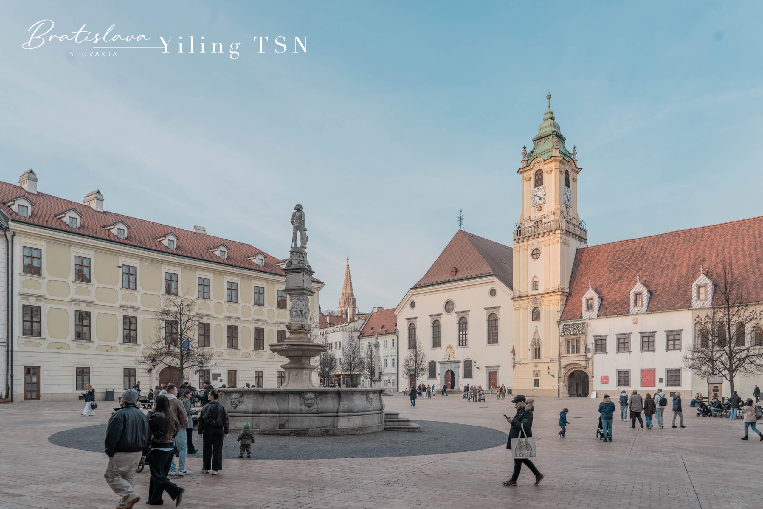 「主廣場(Hlavné Námestie)」舊城區的心臟地帶,中央有著最具代表性的「羅蘭噴泉(Roland Fountain)」,四周被繽紛柔和色調的歐式老屋包圍,「布拉提斯拉瓦舊市政廳(Bratislava Old Town Hall)」則是融合了哥德式、文藝復興和巴洛克等多種風格。