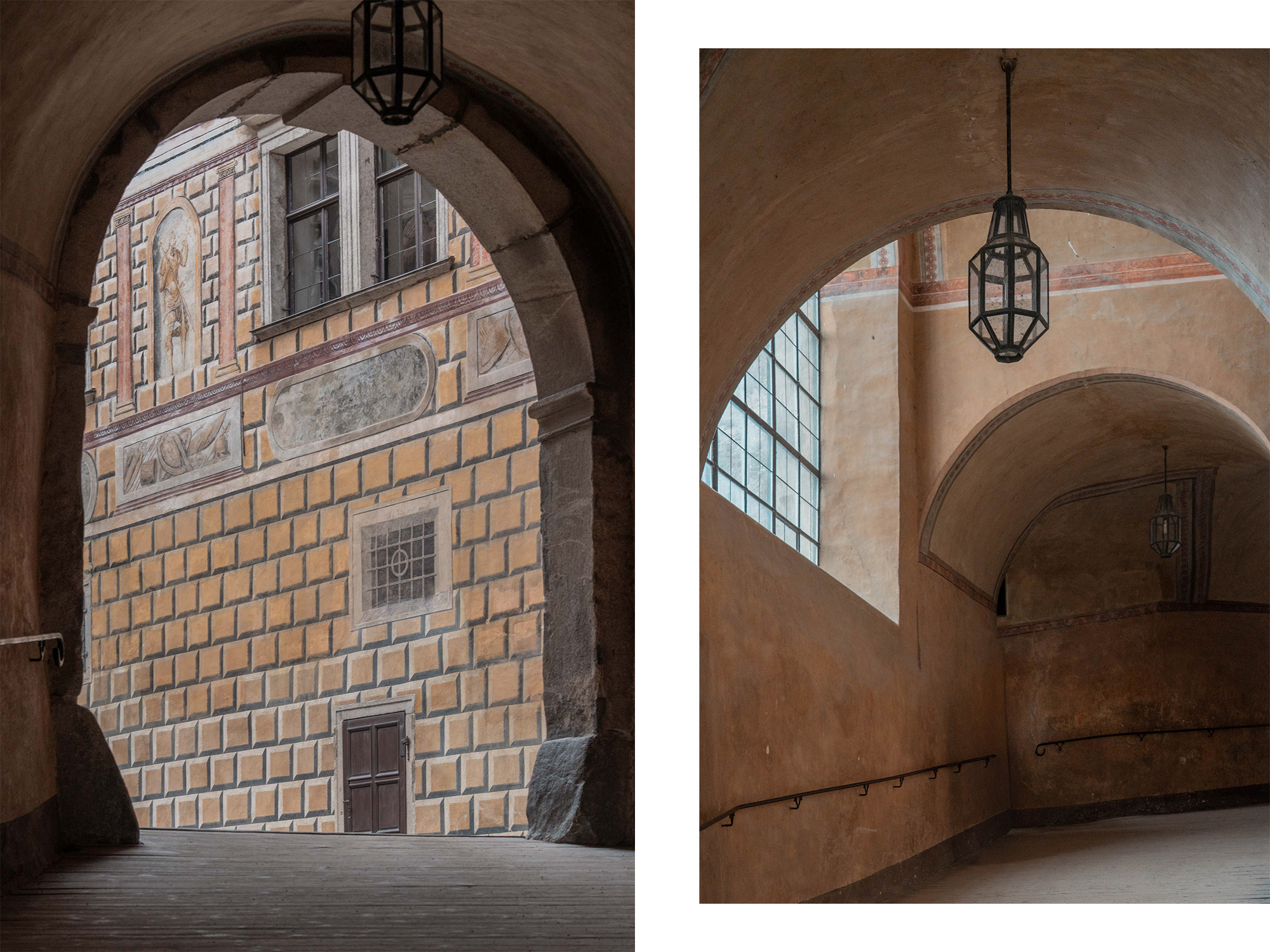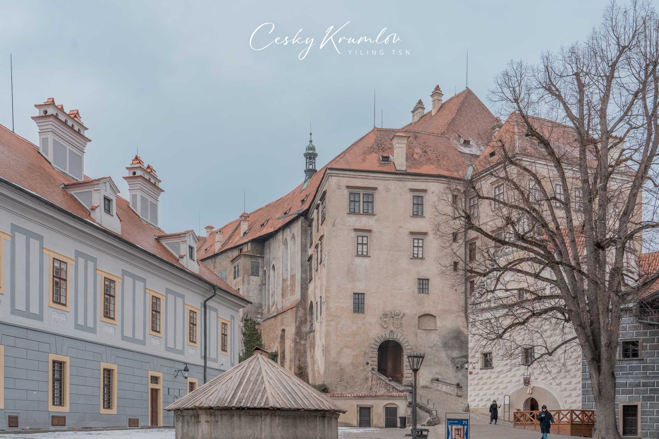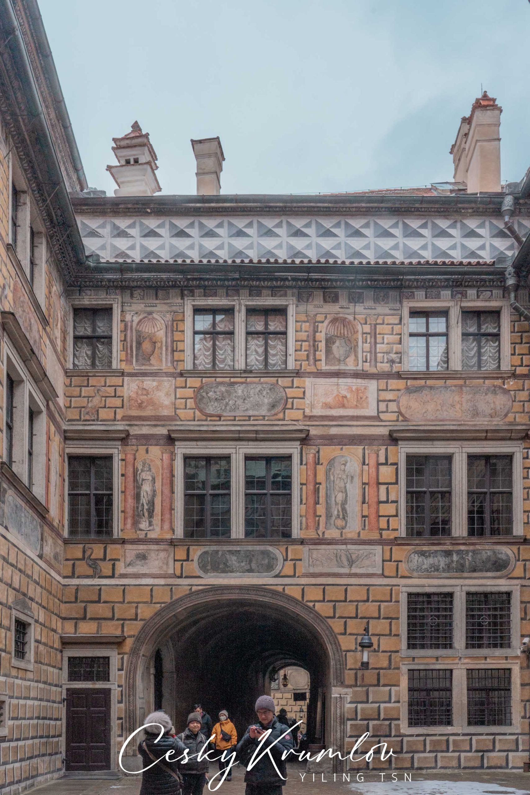 順著坡道往上,就是被列為世界遺產的庫倫諾夫城堡,最初建造於13世紀的龐大建築群,由四十座宮殿所組成,融合了哥德式、文藝復興和巴洛克等多重風格。穿梭在五大中庭間不需要門票,參觀城堡內部就需要報名官方導覽。