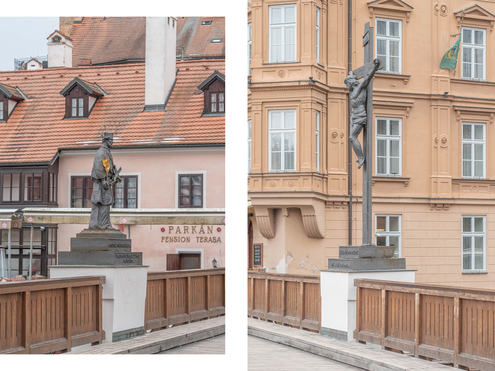揮別了城堡區,踏上跨越河面的理髮師橋(Lazebnický Most),建於1830年代的木橋,由兩側的耶穌和捷克守護聖人雕像靜靜守護,引領我們走進南岸的舊城區。