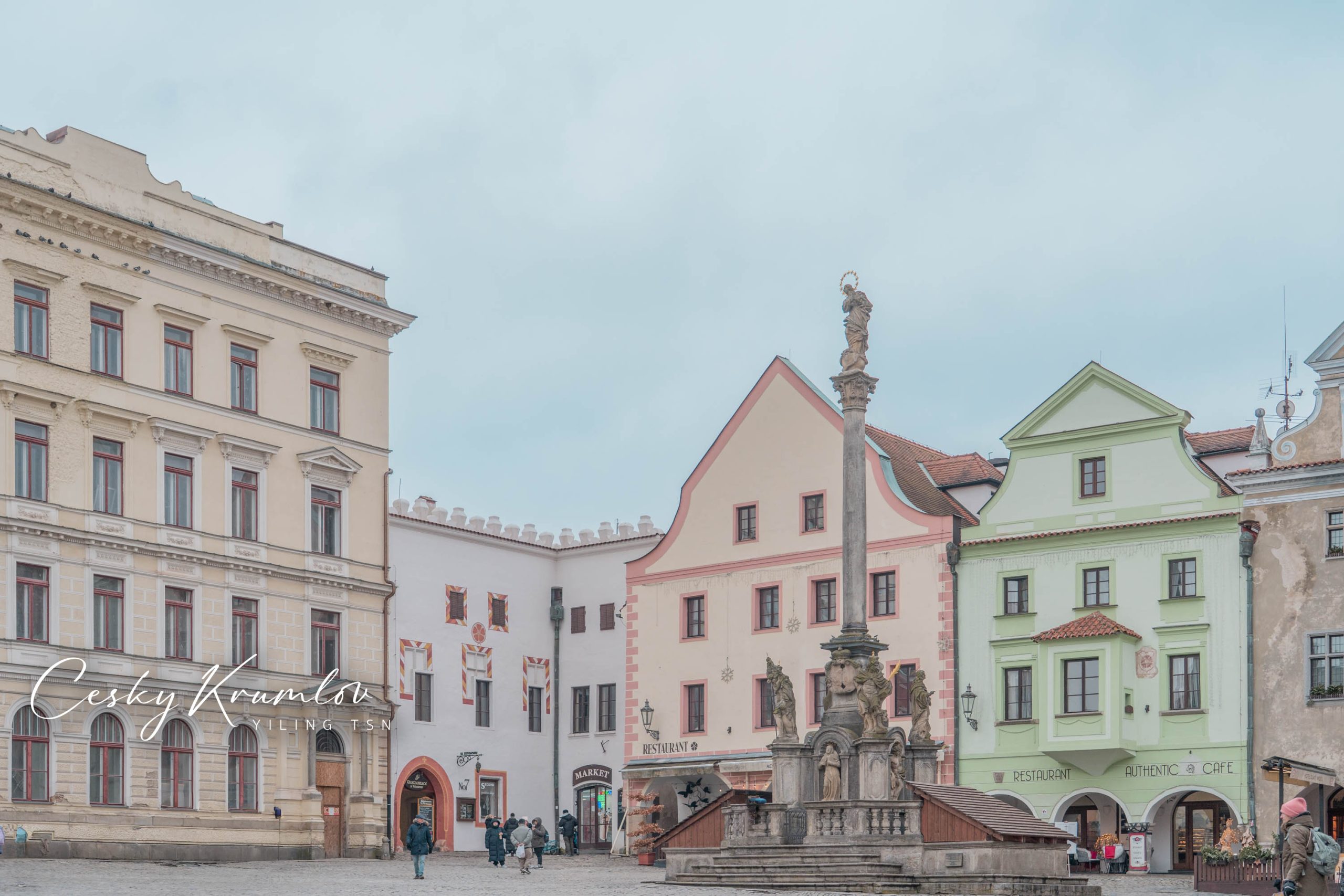 而舊城區的心臟地帶市政廳廣場(Náměstí Svornosti),被色彩繽紛的傳統建築環繞,中央矗立著1716年建造的黑死病紀念柱。