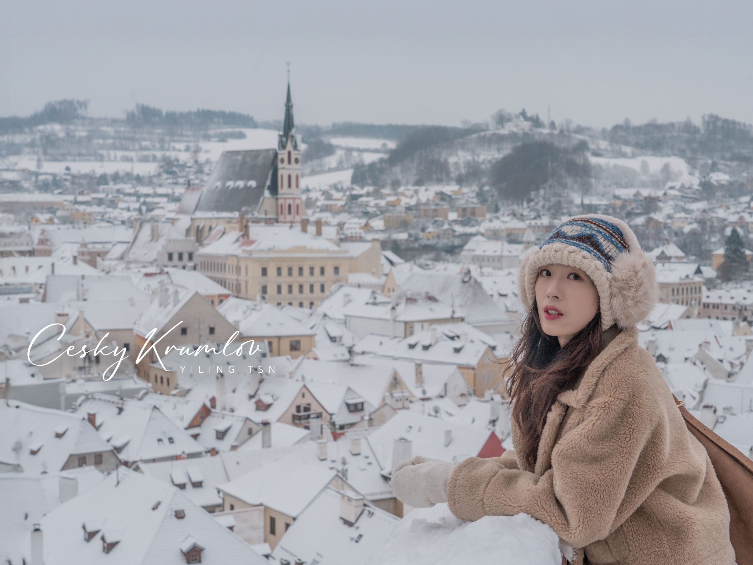其實CK小鎮半天就能逛完,但為了接續前往奧地利哈修塔特的行程,我們庫倫諾夫住宿Pension MONO度過一晚。沒想到夜裡下了一場大雪,隔天清晨再訪城堡同一個觀景台時,原本溫暖飽滿的橘紅景致,一夜之間變身成連綿起伏的純白屋頂,就像是走進了一顆靜謐的雪花水晶球裡,夢幻得好不真實。