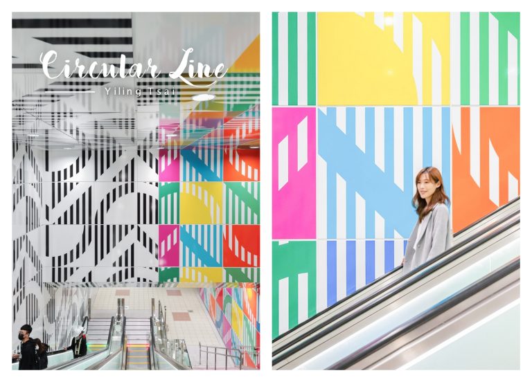 板橋站的公共藝術我自己很愛,是由法國藝術家 Daniel Buren 所設計,利用對稱、鏡射、穿透、對比的方式組合不同顏色,從站內一直沿伸到天花板、牆面、車站大廳、外觀墩柱,從捷運站走到室外,就是一場藝術的饗宴呀!