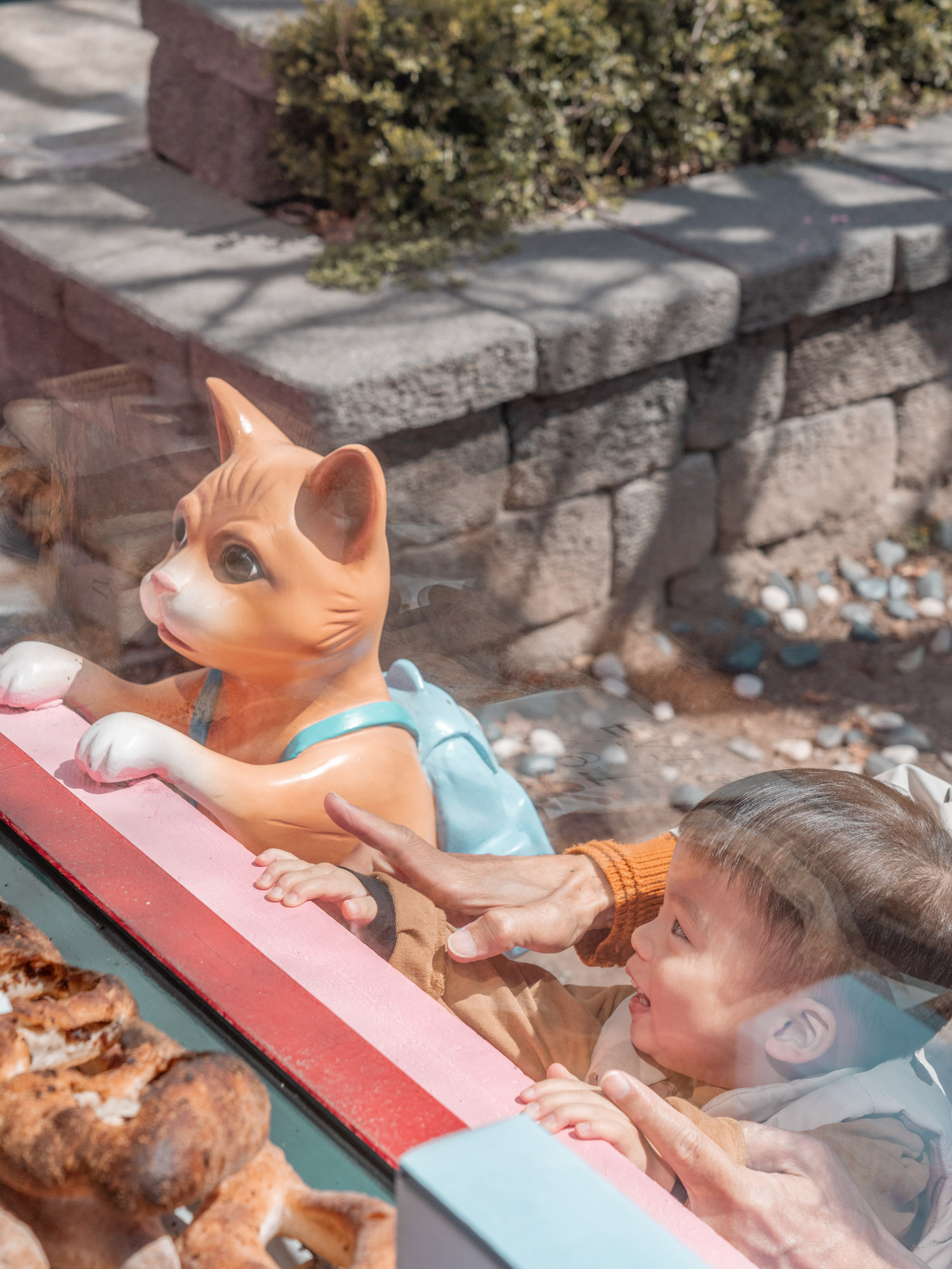 門口有好幾隻貓兒模型,這隻趴在窗外偷看的橘毛也太勾錐,忍不住和旅伴在這玩了超久。