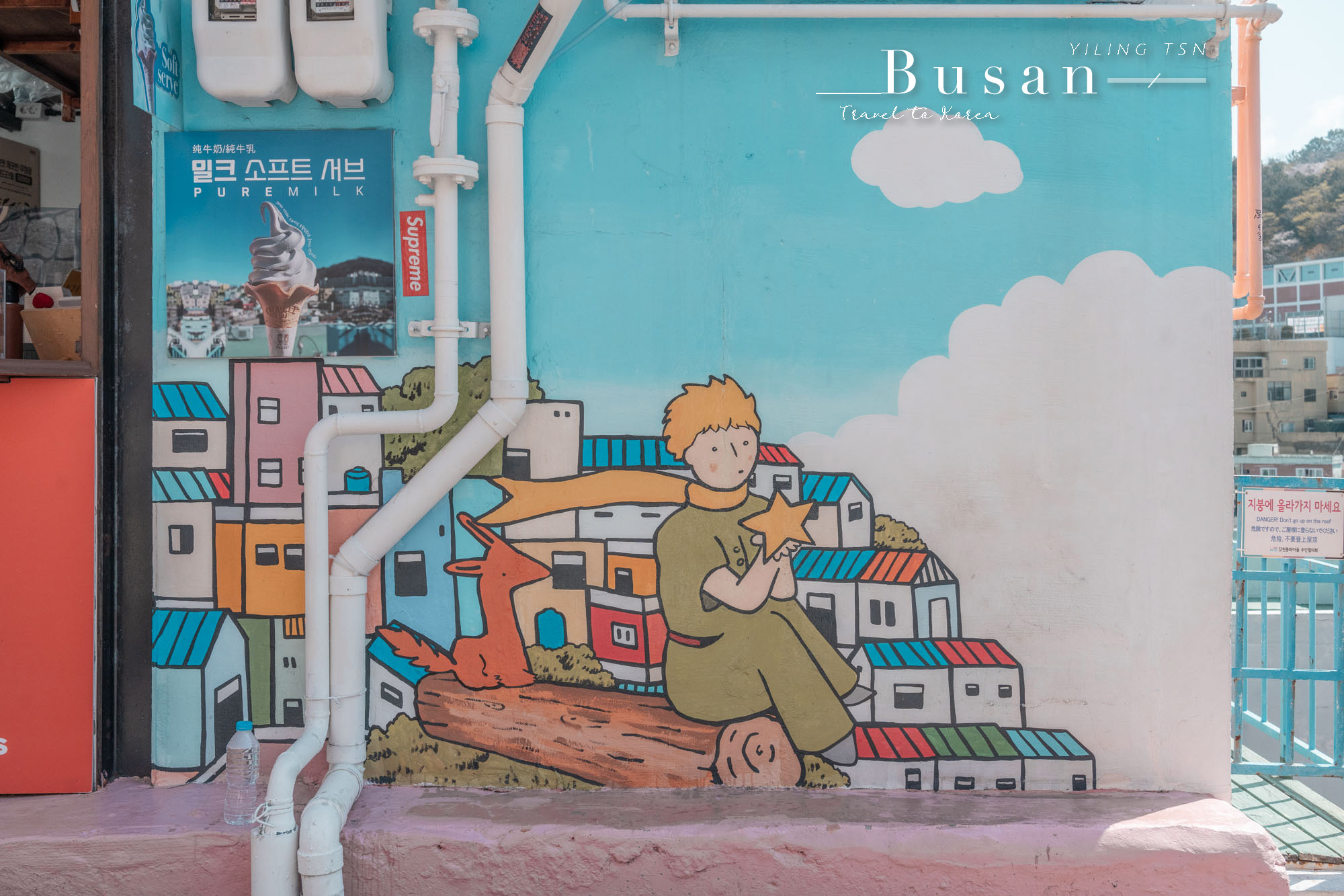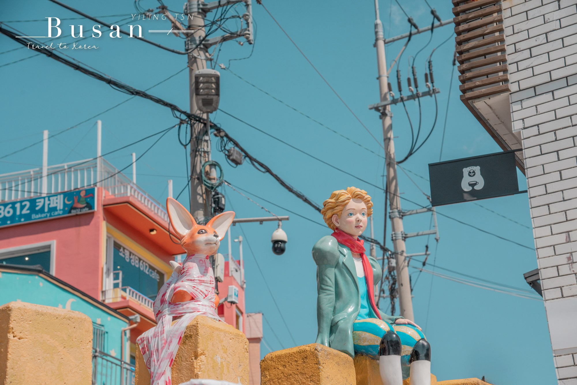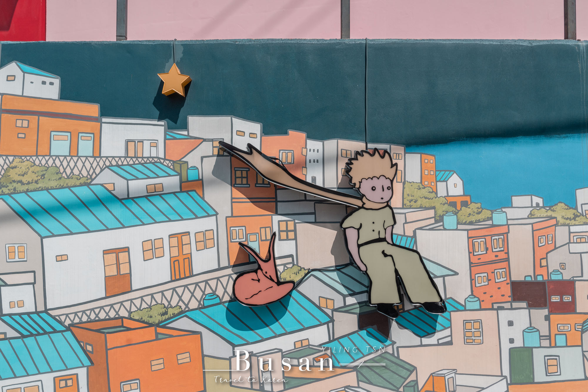 小王子與狐狸的背影應該是甘川洞文化村最熱門的打卡點,只要一放出這張照片,大家就知道你人在釜山呀哈哈哈!前方還有個小平台,如果想要轉到正面一起背影入境的話,不用擔心會摔下去。