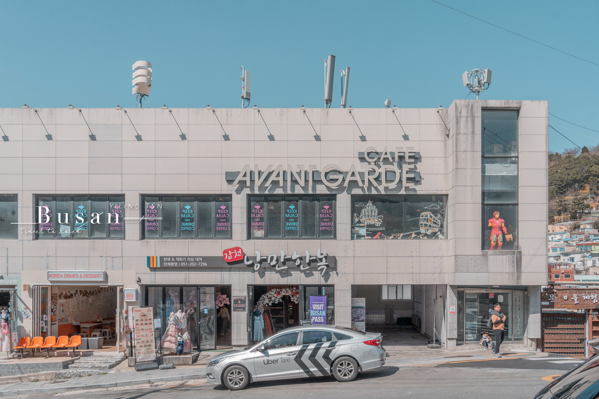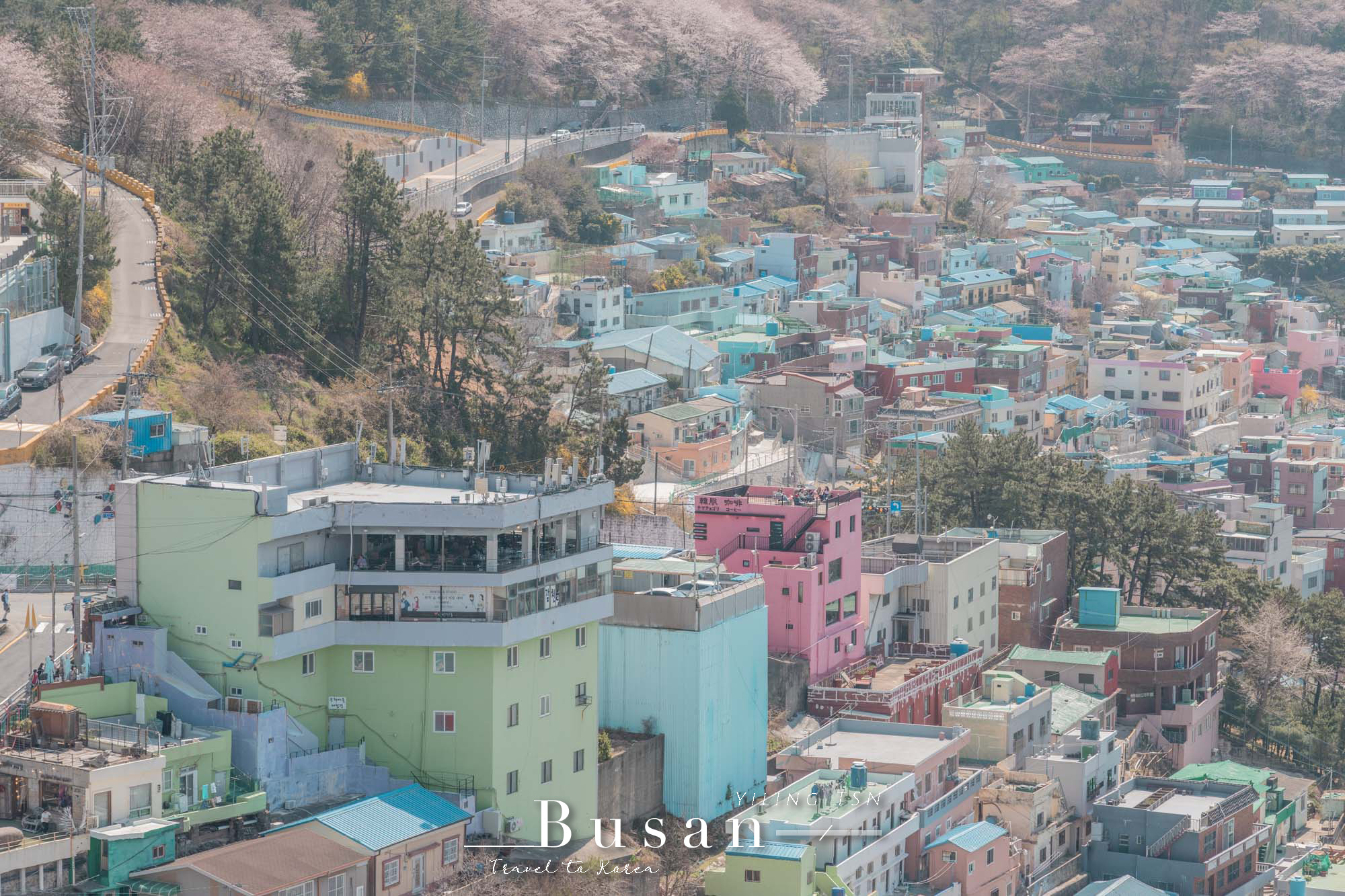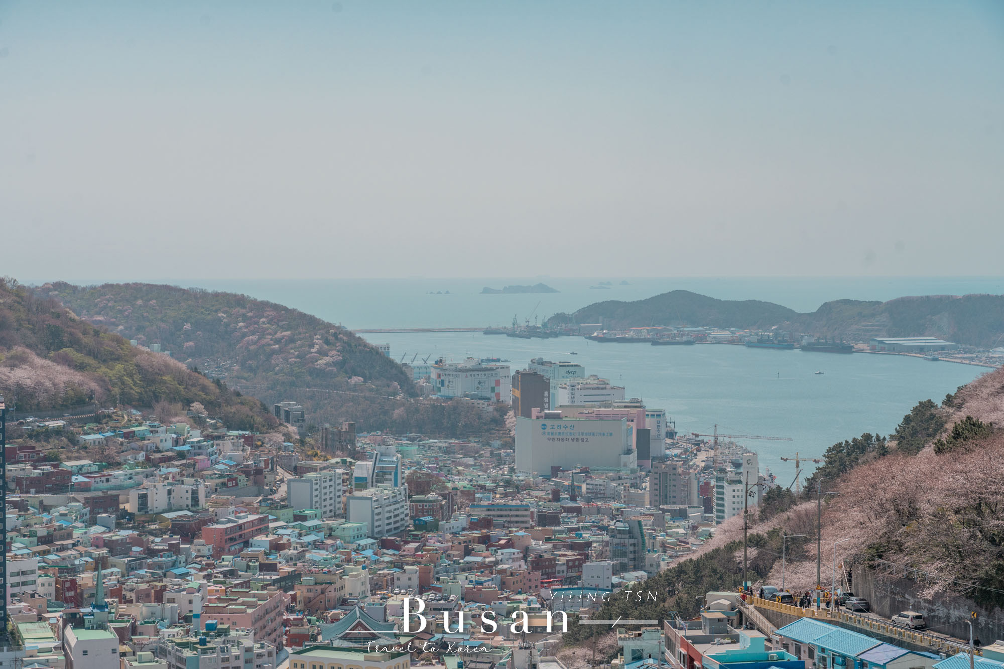 你看看你看看!這景觀是不是超棒!雖然說免費的天空觀景台也能拍到類似角度,不過坐在這兒喝杯熱飲,吹著涼涼的風,望著甘川洞文化村美景,這才是屬於釜山的悠閒步調呀!