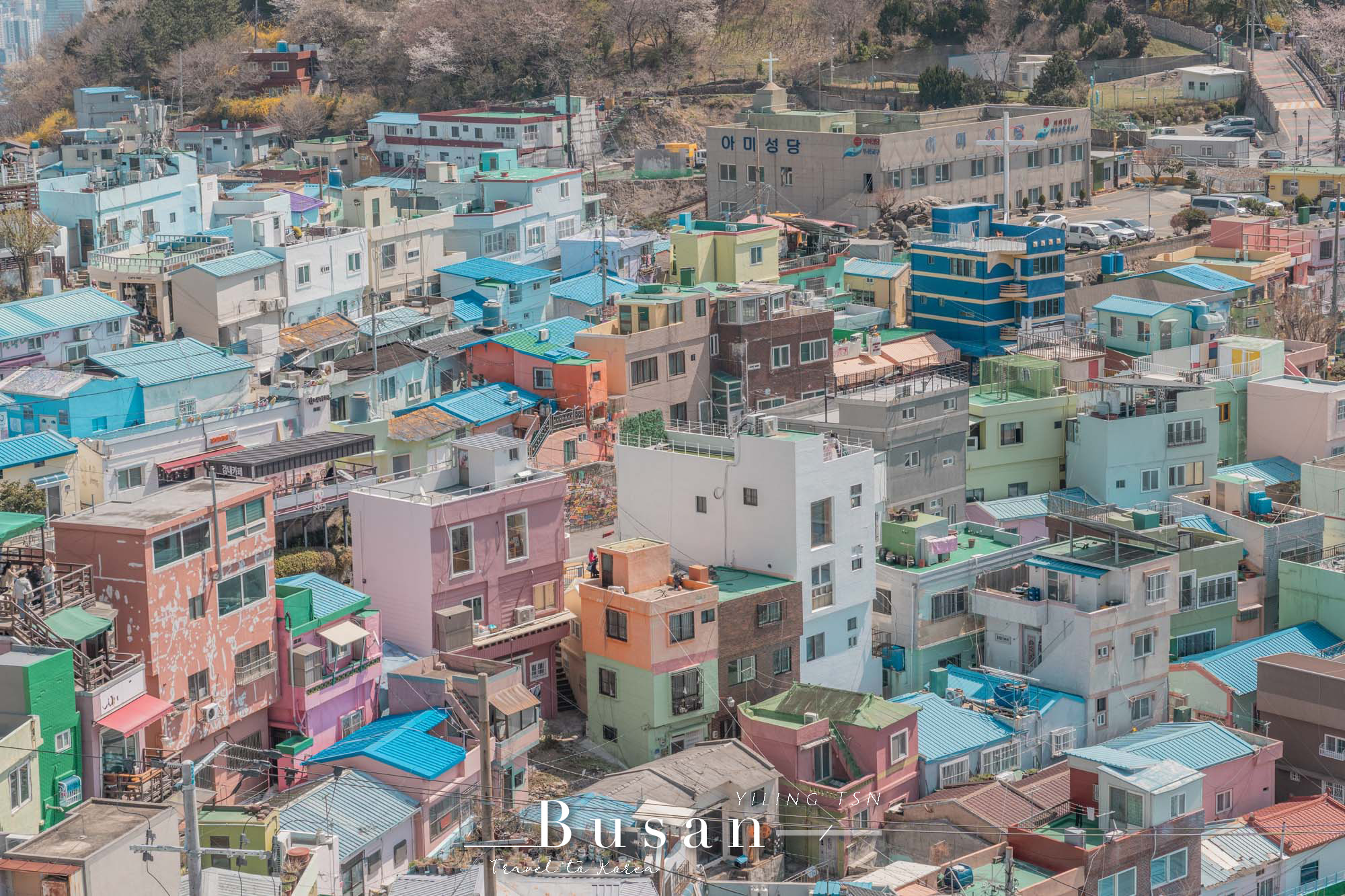 關於甘川洞文化村(Gamcheon Culture Village)歷史可以從1950年代韓戰時期說起,避難者來到釜山定居,依靠山丘建造而成的階梯式住宅,也成為甘川最獨特的樣貌。近年來則是因為政府推動都市再生計畫,邀請藝術家彩繪創作,也進駐許多文創品牌,讓甘川洞文化村搖身一變成為最繽紛的山坡迷宮。
