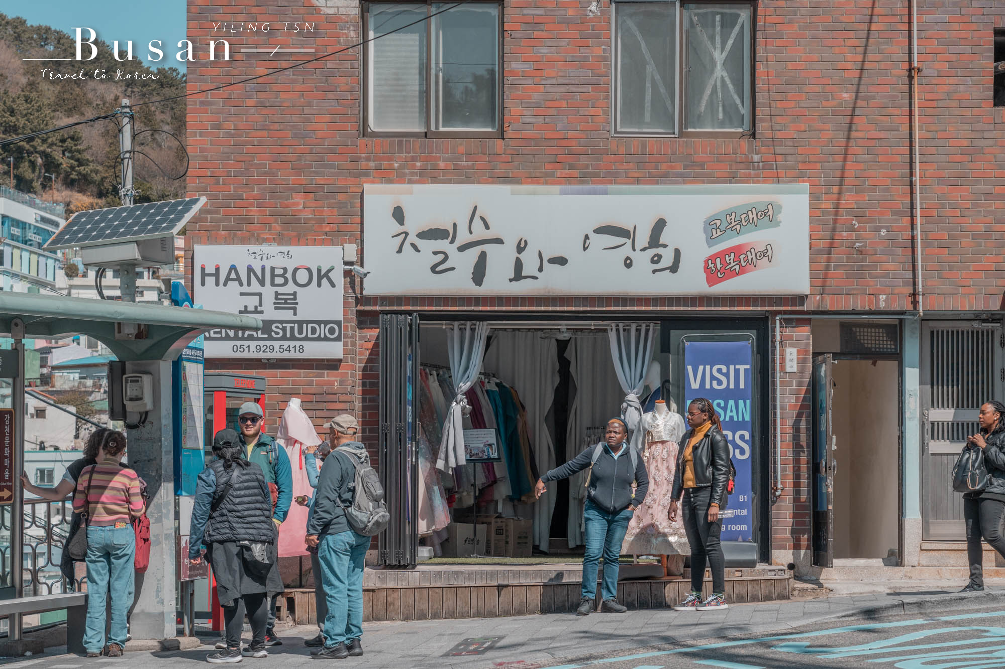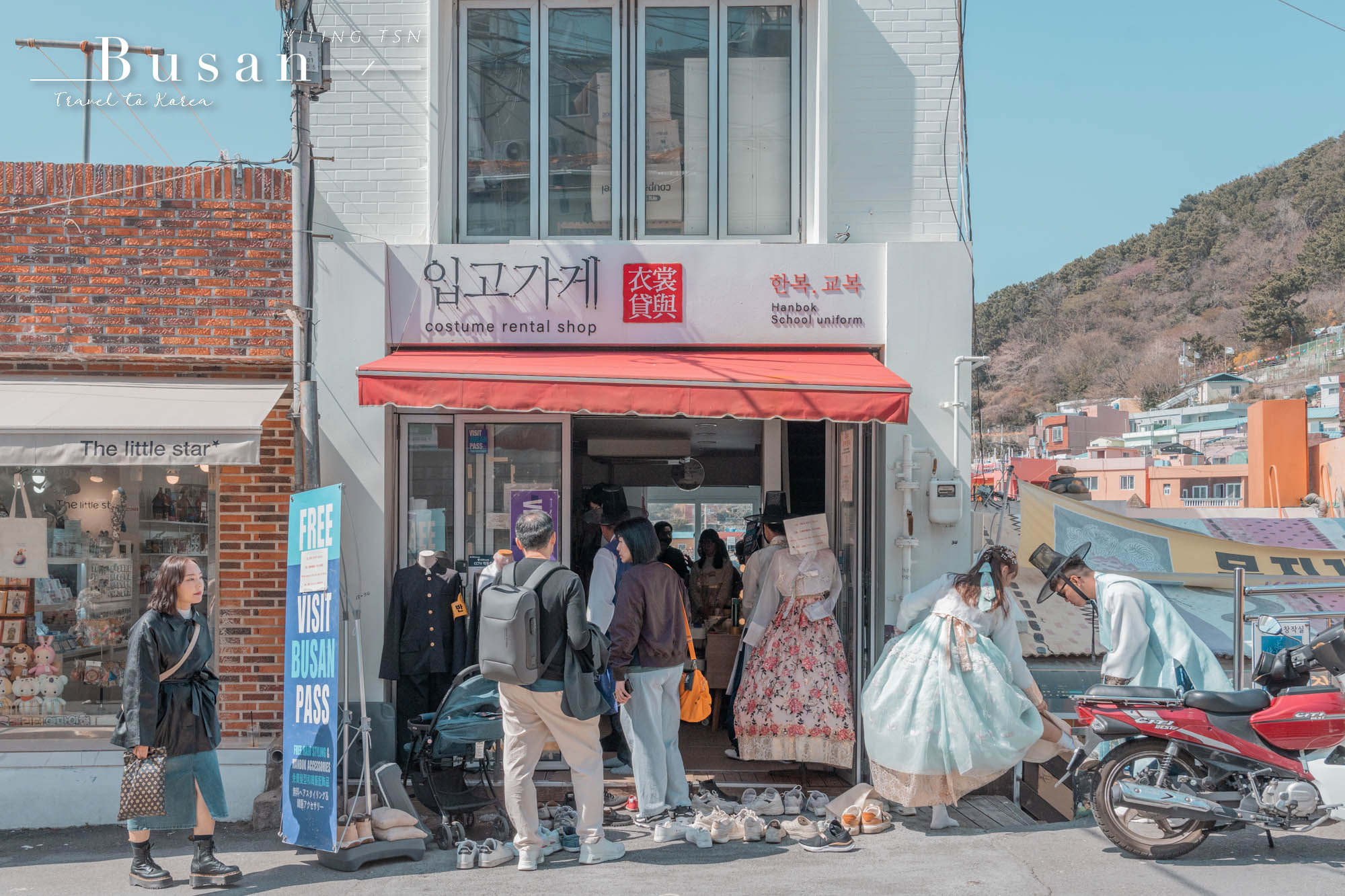 甘川洞文化村有多家韓服體驗品牌,例如哲秀與英熙、甘川浪漫韓服和衣裳貸與,持有釜山通行證大多能免費租借。