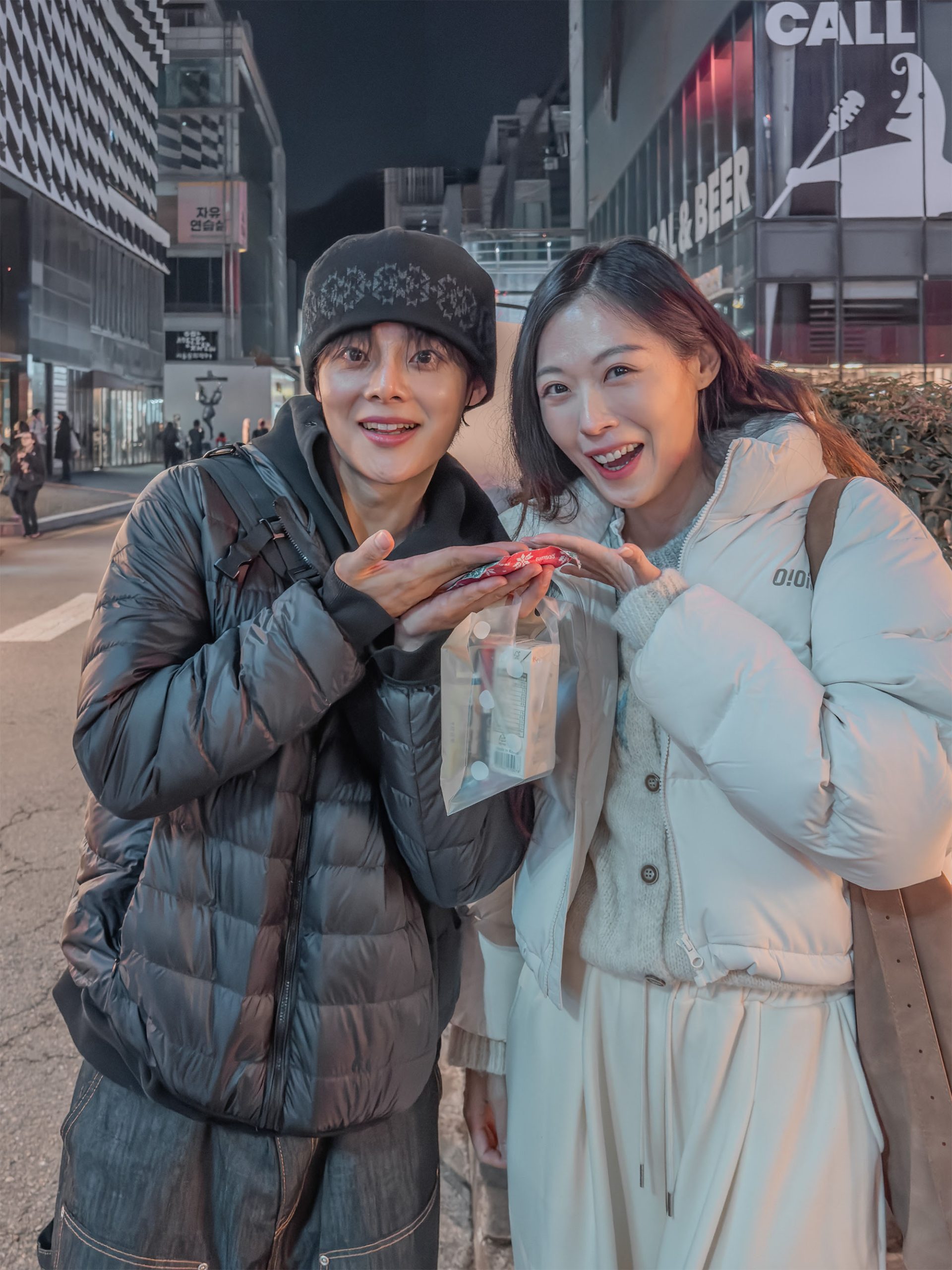 現場有販售劇照小卡和香水等周邊讓大家收藏,換票時我們都收到了隨機拍立得,像抽盲盒一樣,每個人都會拿到不同演員的照片。當天旅伴收到了飾演Jin的演員小卡,旁邊一位韓國女生看到眼睛瞬間發光,立刻興奮地跑來問能不能交換。