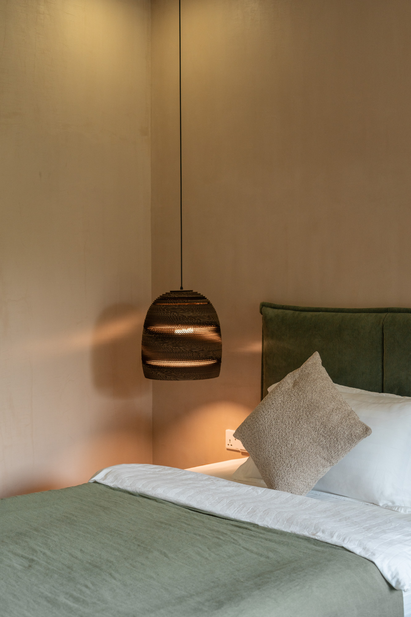 我和旅伴被安排在豪華房,溫潤米色調設計,搭配上綠色家飾點綴,和戶外花園相互輝映,兩張雙人床,每個人都有床邊桌、閱讀燈、兩張枕頭和充足的插座,靠牆這一側則是開放式衣架和簡單書桌。