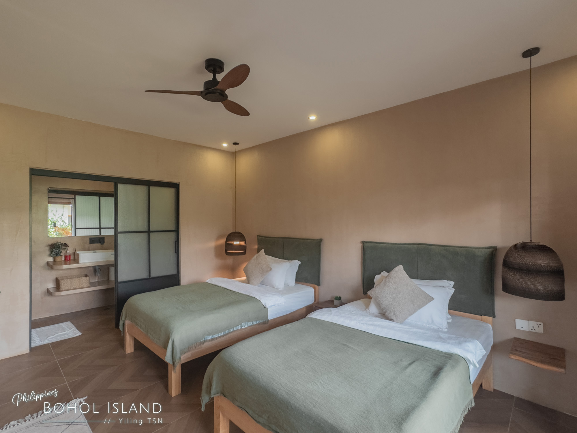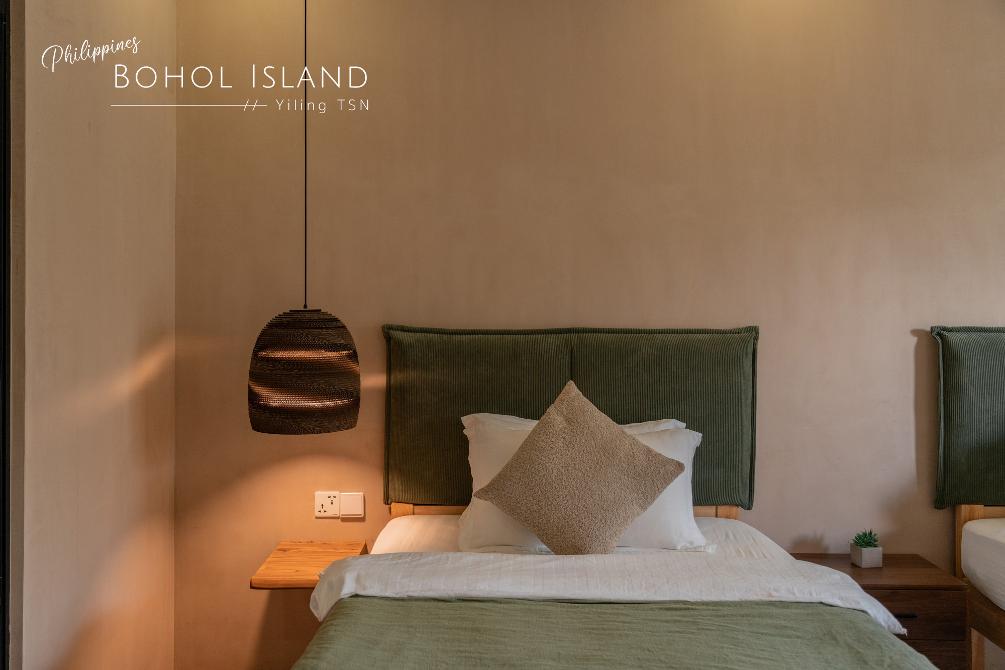每張床上都準備了帶有菲律賓巧思的小禮物,我們收到的是貝殼手鍊,另一間房則是眼鏡猴小吊飾。