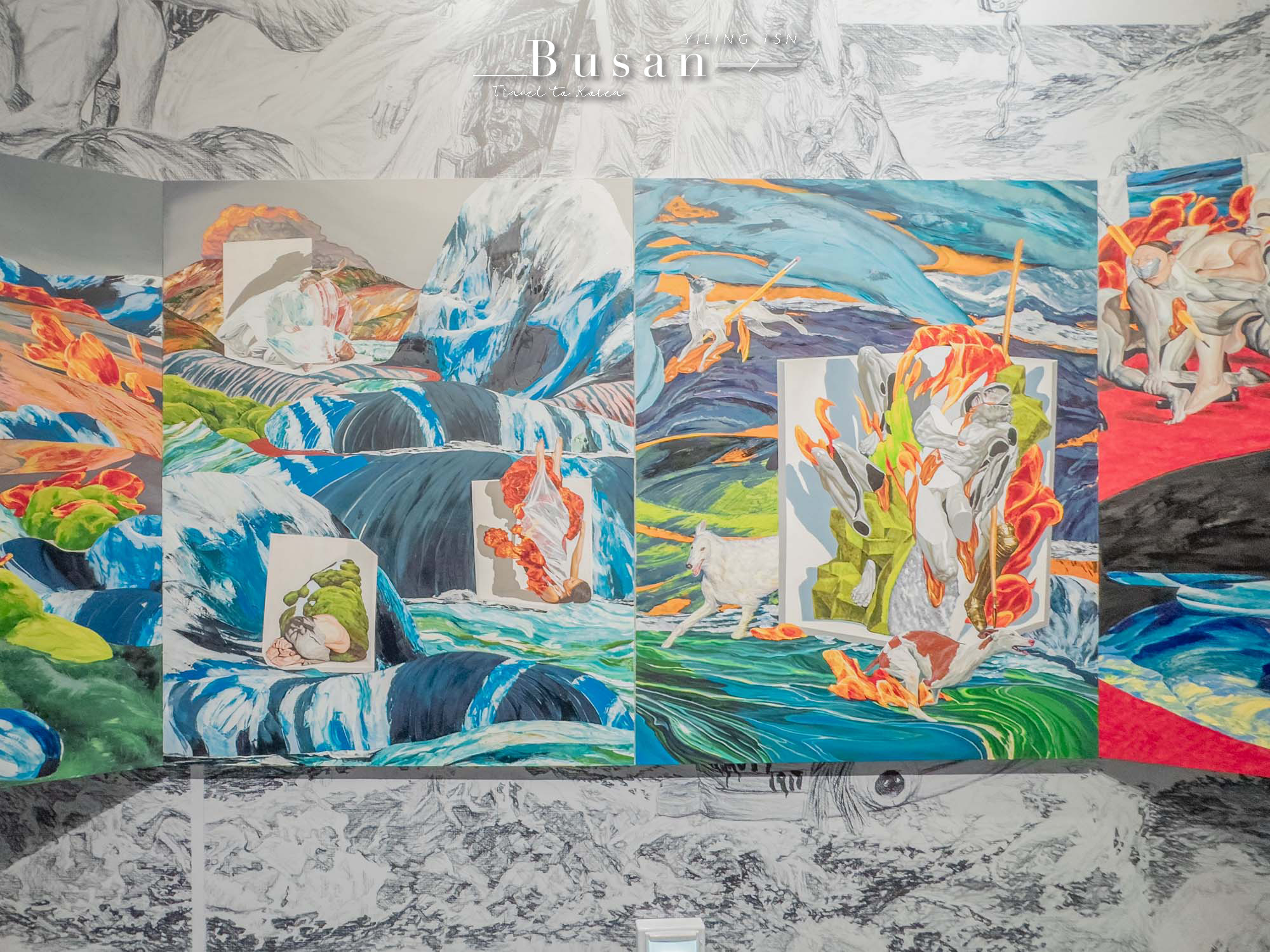 當天最讓我印象深刻的是《The old prince》,每次來釜山都覺得根本是《小王子》的故鄉,不論是甘川洞文化村或是松島纜車都能見到小王子的身影,曾經我們也充滿夢想,如今卻被社會打磨成為厭世的老王子。