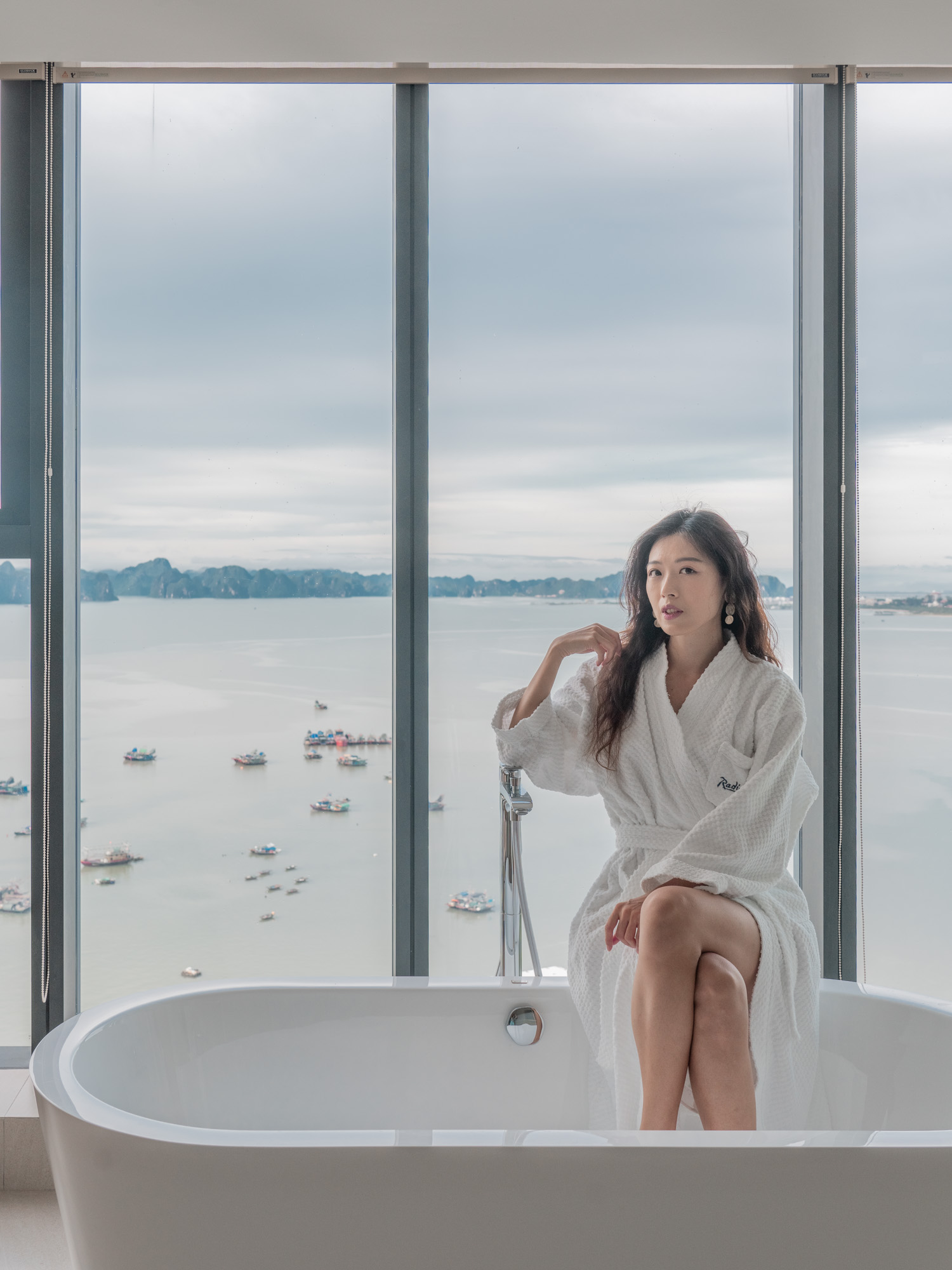 第一天晚上入住下龍灣麗笙藍標飯店(Radisson Blu Hotel Ha Long Bay),國際知名連鎖五星品牌,海景房能眺望下龍灣景色,床具舒適好睡,寬敞的浴室徹底卸下舟車勞頓疲憊。
