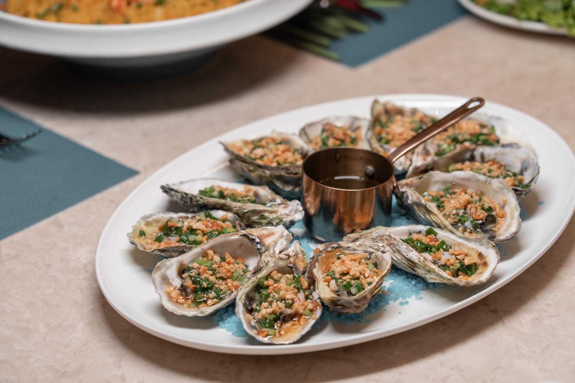抵達觀瀾島悅椿度假酒店卸下行李稍作休息,晚餐則是在度假村主餐廳享用「觀瀾島海洋晚宴」,餐點設計非常用心,手工製作海鮮春捲口感酥脆,嫩烤自產鮮生蠔搭配傳統香蔥醬好開胃,鮮扇貝湯配野生細海帶帶著新鮮的海味。
