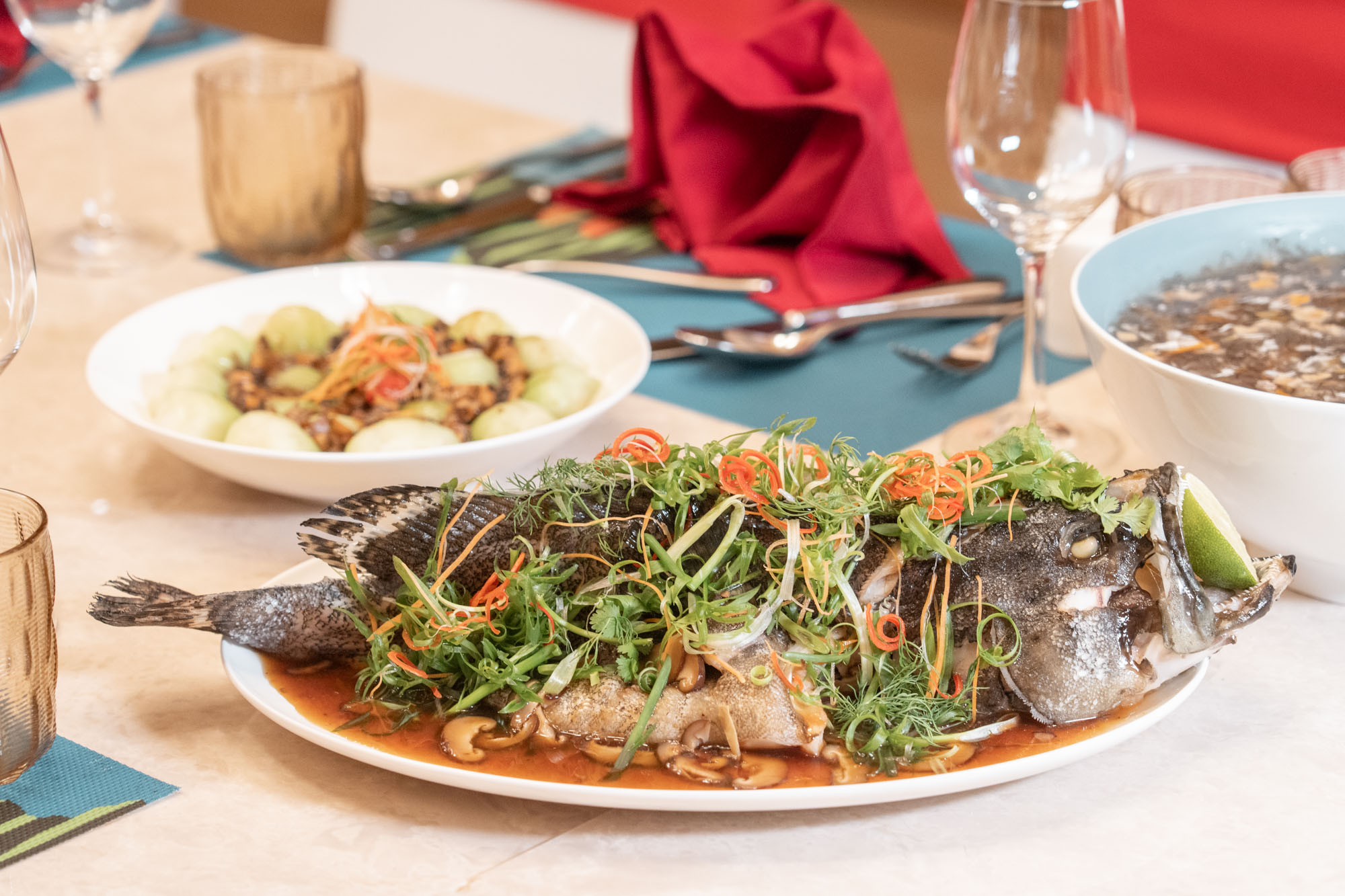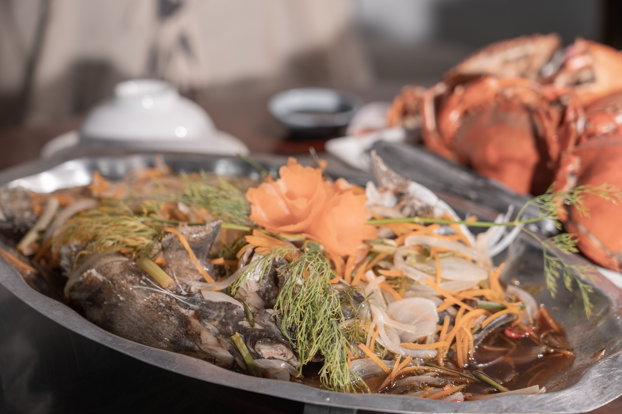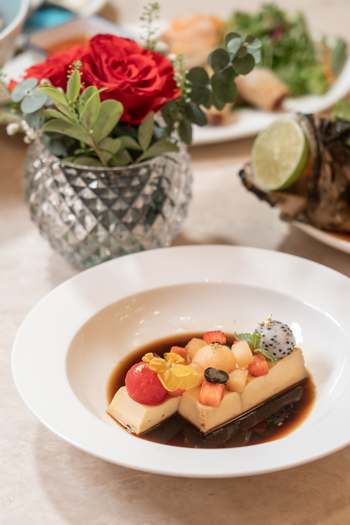 清蒸石斑魚肉質細膩,還有傳統觀瀾島燜海蟹,嫩焯有機青菜營養均衡,就連觀瀾島鮮蝦炒米飯也都表現不錯,最後再以焦糖咖啡奶糕伴熱帶鮮果作為完美的甜蜜結尾。