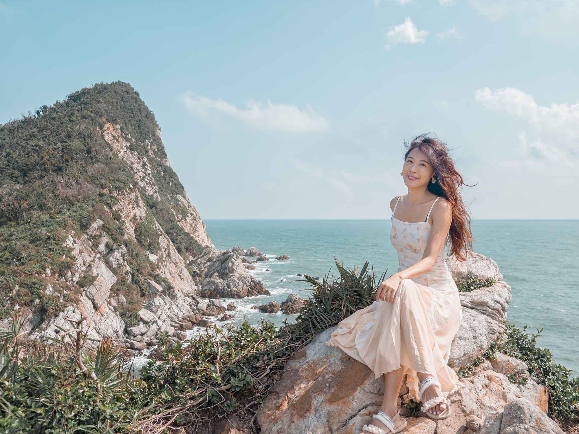 第三天早上我們搭乘電瓶車探索觀瀾島,沒有被過度開發,當地居民可愛純樸,時間彷彿在這座小漁村裡按了暫停鍵。沿著步道慢慢走上無極觀景台,明洲灣海景一覽無遺,漸層海水顏色,伴隨著天際線無限延伸。