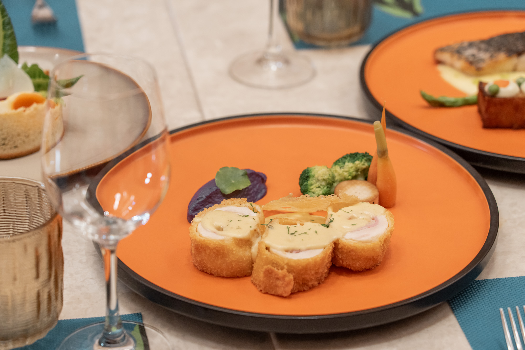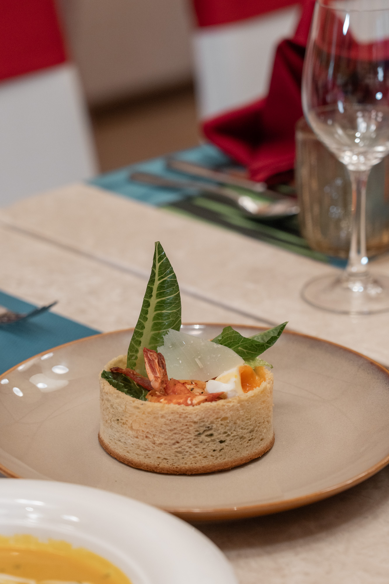 午餐以精緻套餐呈現,烤生蠔、鴨胸沙拉、鮮蝦和排餐雙主菜,是舌尖上的大滿足。