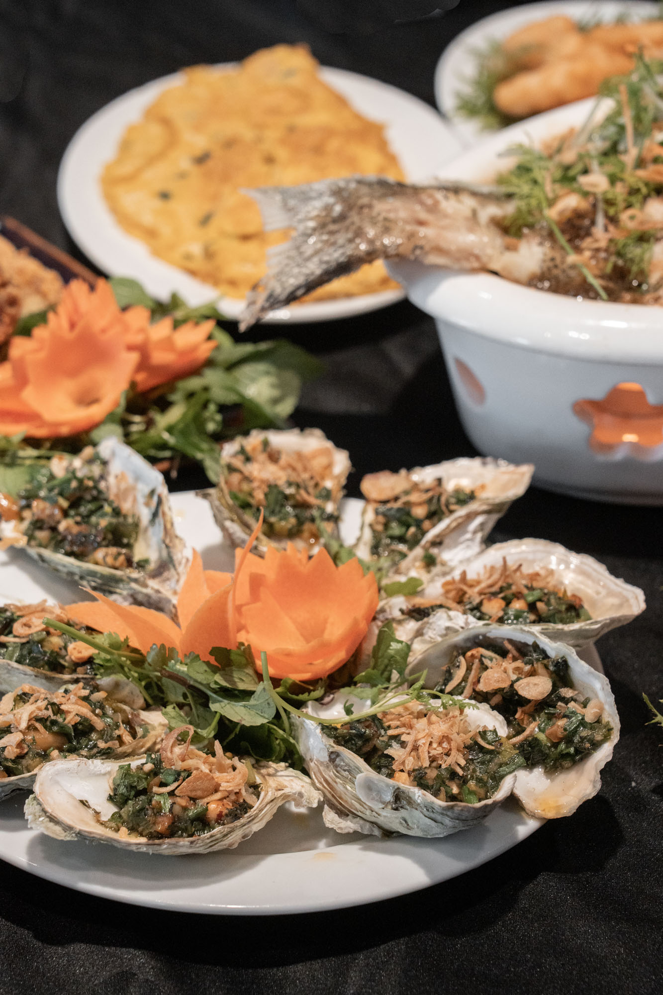 桌面再次被新鮮海味佔滿,肥美飽滿螃蟹、清甜生蠔、肉質彈牙鮮蝦和鮮魚,還有特殊風味的墨魚餅,我想這趟旅程在離開越南前,不胖個3公斤應該是不被允許上飛機的哈哈哈!