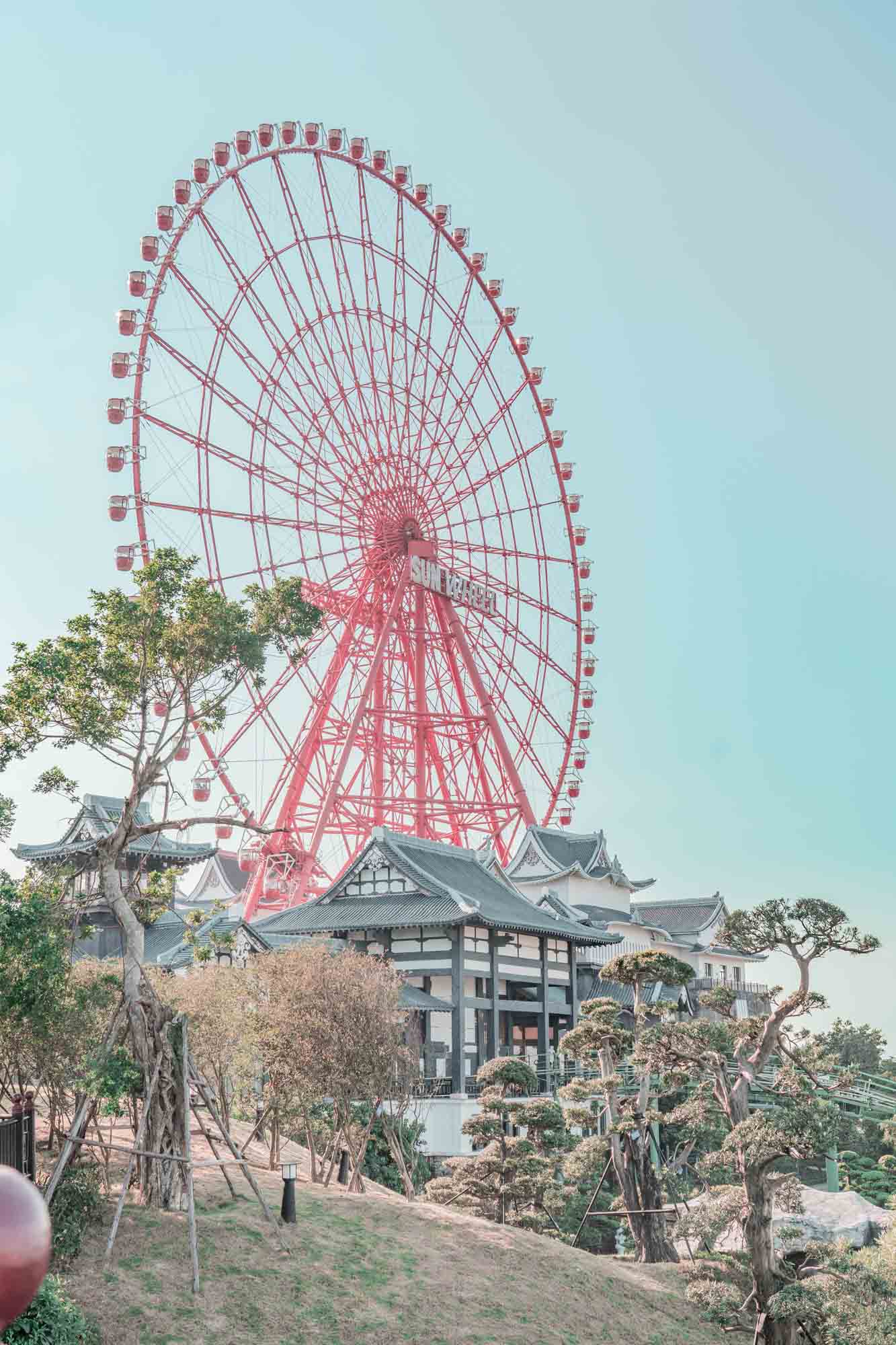 緊接著體驗的太陽之眼摩天輪,高達215公尺,紅色外觀非常吸睛,繞行一圈大約需要20分鐘。穩定的速度旋轉,也足夠的時間能從不同角度遠眺景色,若是黃昏時刻前來,還能見到絕美夕陽。
