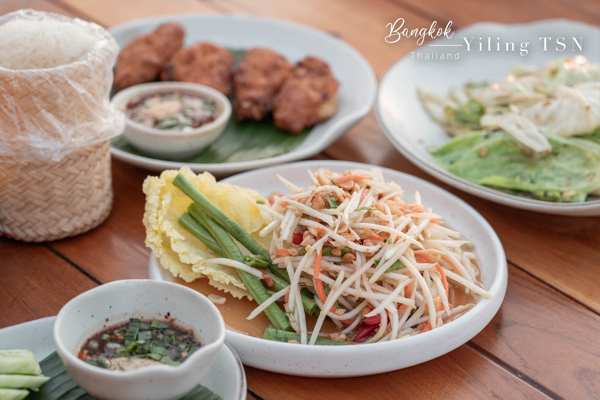 經典泰式組合,酸辣解膩青木瓜沙拉,炸得脆口的雞翅和糯米飯,當作開胃菜很適合。