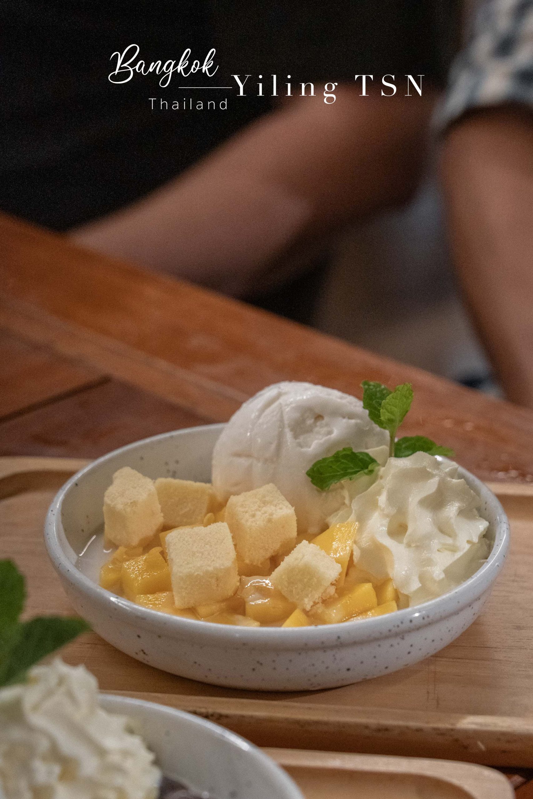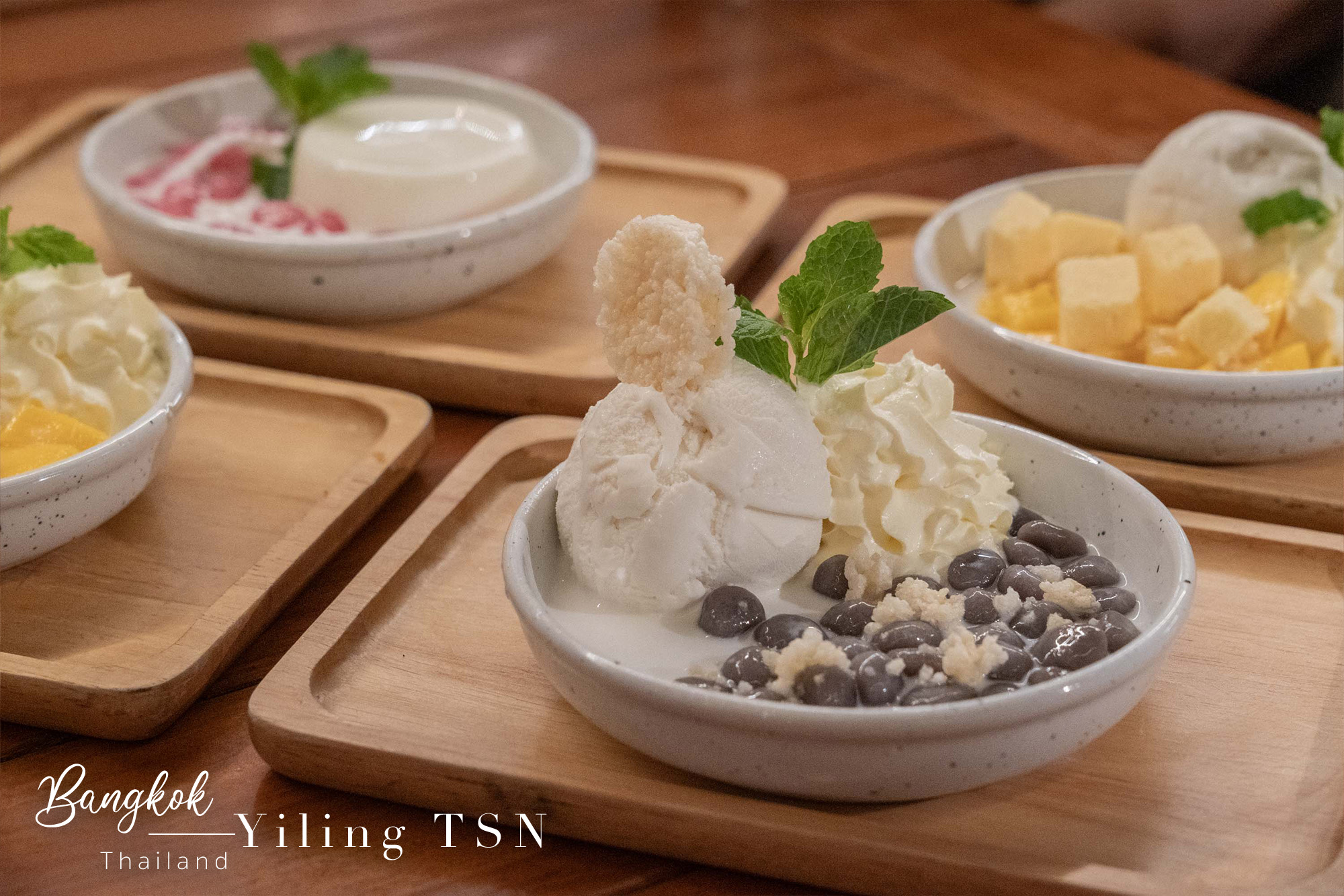 Taro Bualoy with Coconut Ice Cream Topped with Crispy Rice 芋圓椰子冰淇淋、Coconut Ice Cream with Diced Mango and Butter Cake 芒果奶油蛋糕椰子冰淇淋