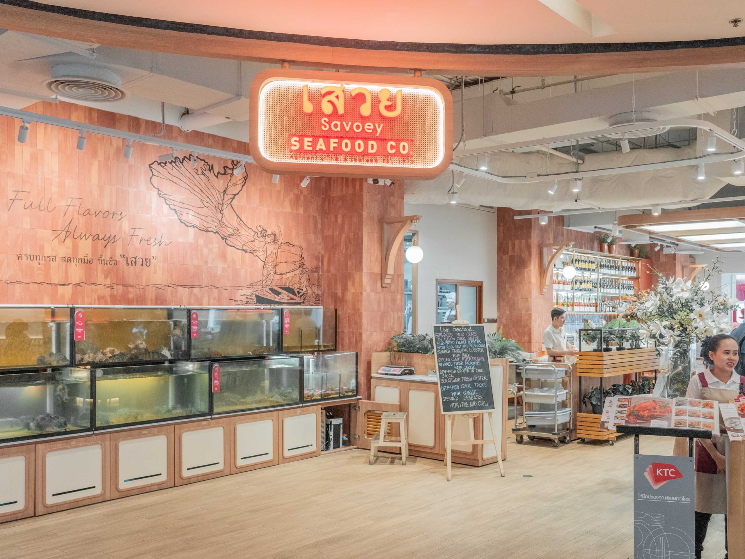 Savoey Seafood Co.上味泰餐館一直是曼谷老字號海鮮餐廳的代表,位於BTS捷運Chidlom站旁Mercury Ville分店近期完成全新改裝,以明亮淺木色系清新風格為主,除了「活海鮮水族箱」現撈海味之外,甚至在半開放式廚房設置了「泰式傳統炭火爐」,主廚用大火在現場炭烤,將獨有的煙燻香氣鎖進海鮮中,就來看看我的心得分享吧!