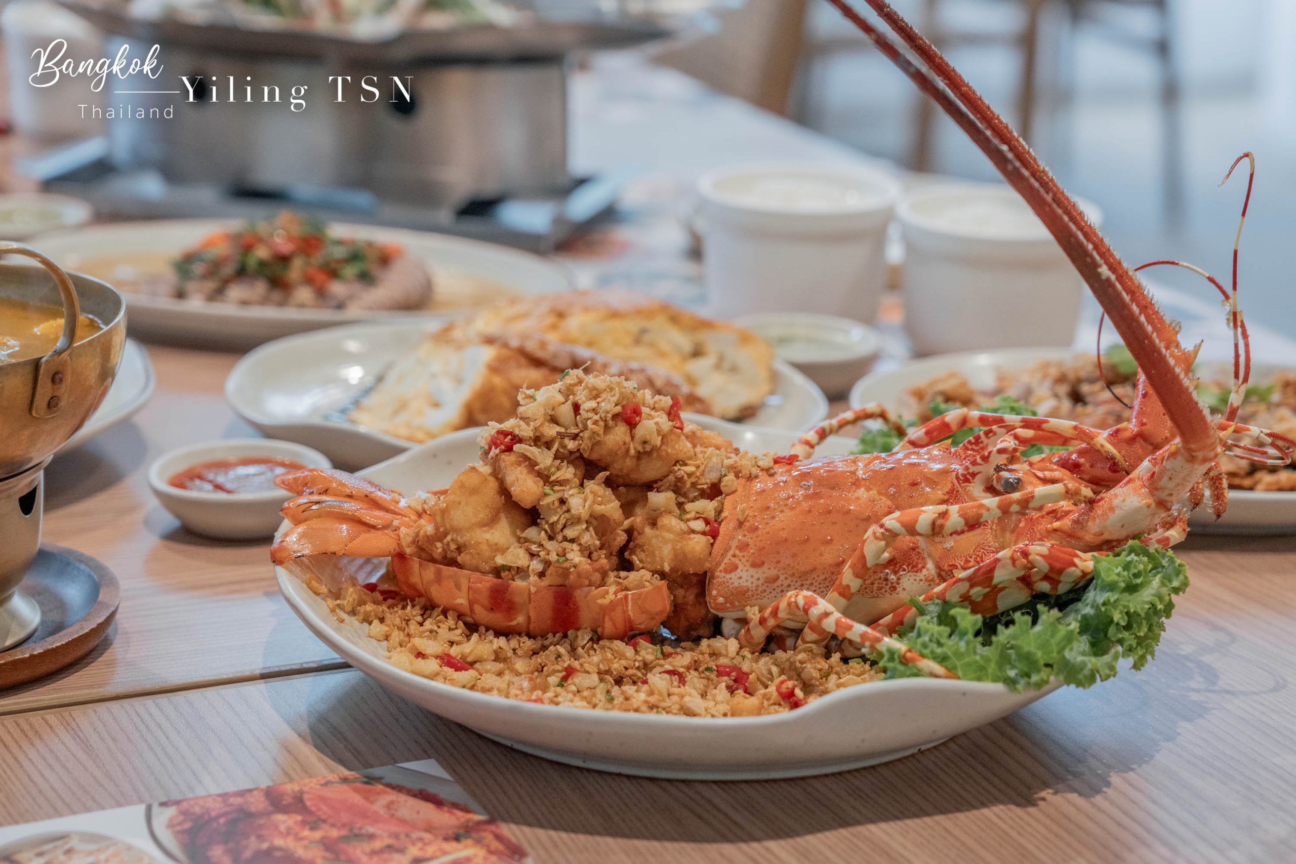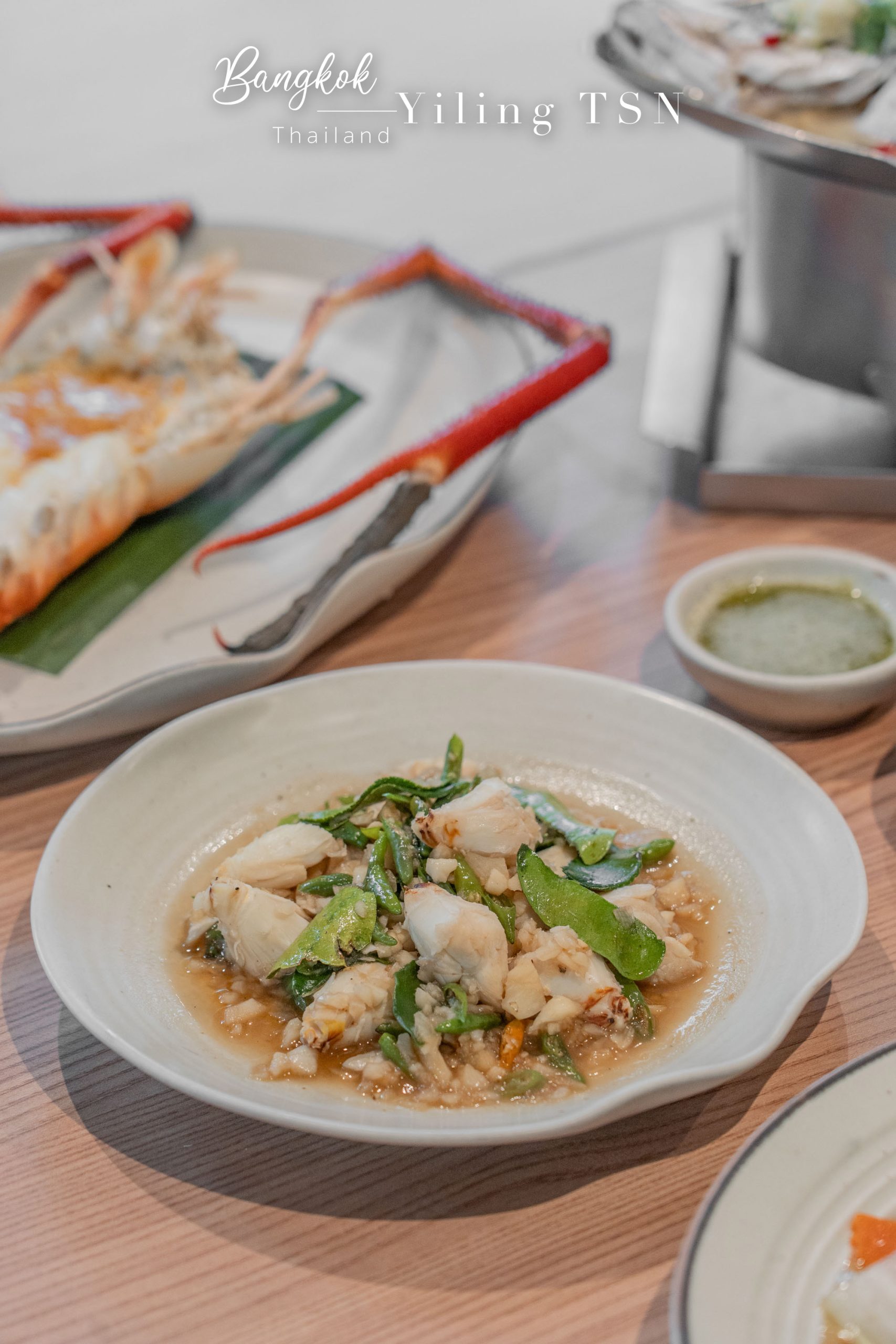 Grilled Giant River Prawn 烤河蝦、Stir-Fried Phuket Lobster with Rock Salt and Fresh Chili 普吉海鹽辣炒龍蝦
