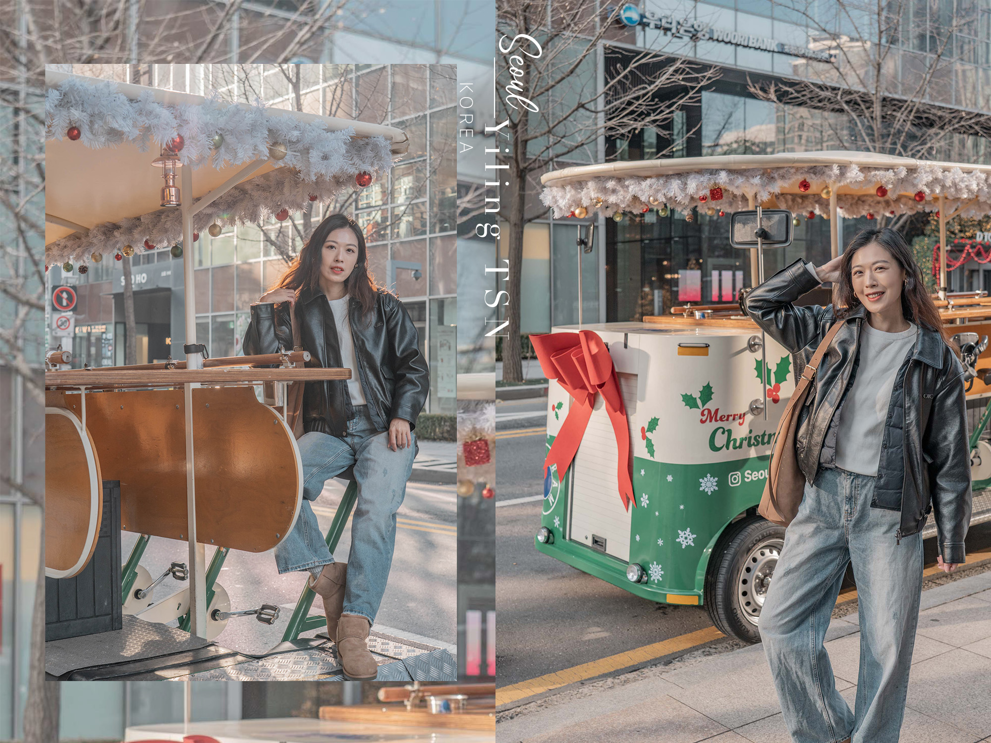 一路騎到了景福宮周邊,正值12月期間,也在光化門廣場上見到了聖誕樹裝飾,古今美學奇妙碰撞,冬季限定的視覺饗宴。