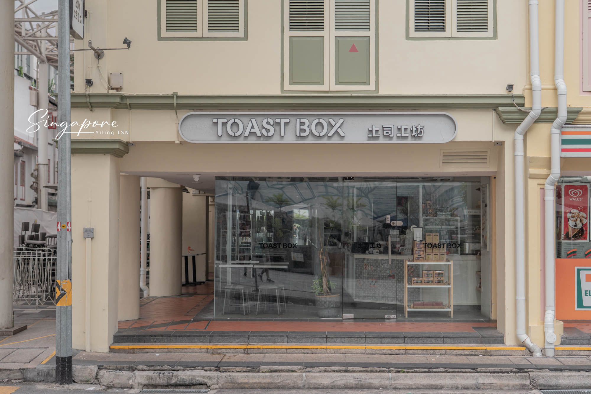 我們這次入住牛車水附近,挑了一天到離飯店不遠的Nankin Row分店享用早餐,淺黃色調建築外觀,搭配一整面落地窗,俐落現代感當中又保有著懷舊氛圍。