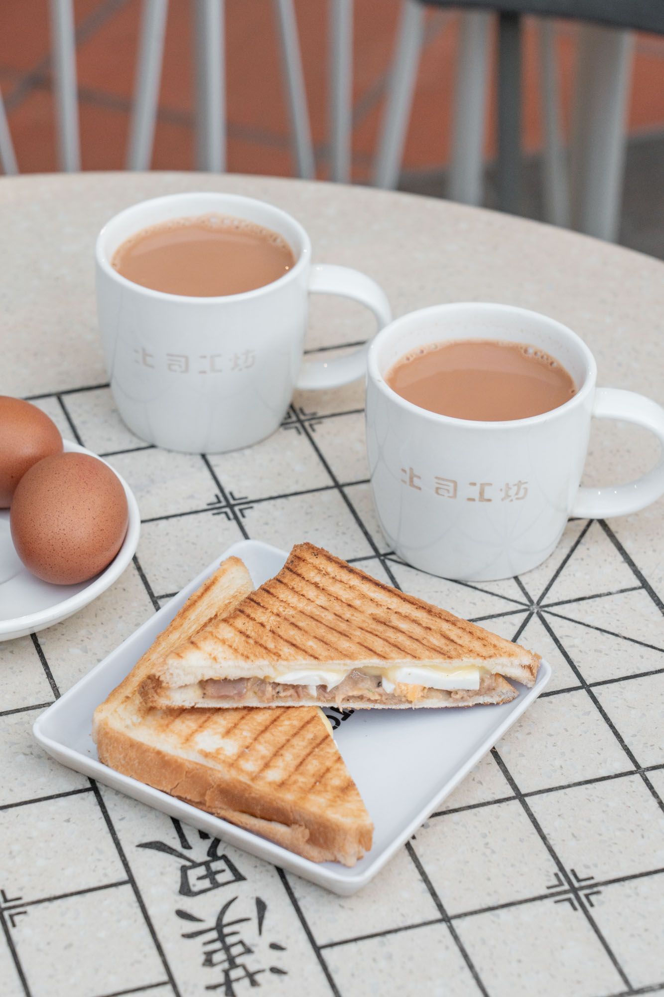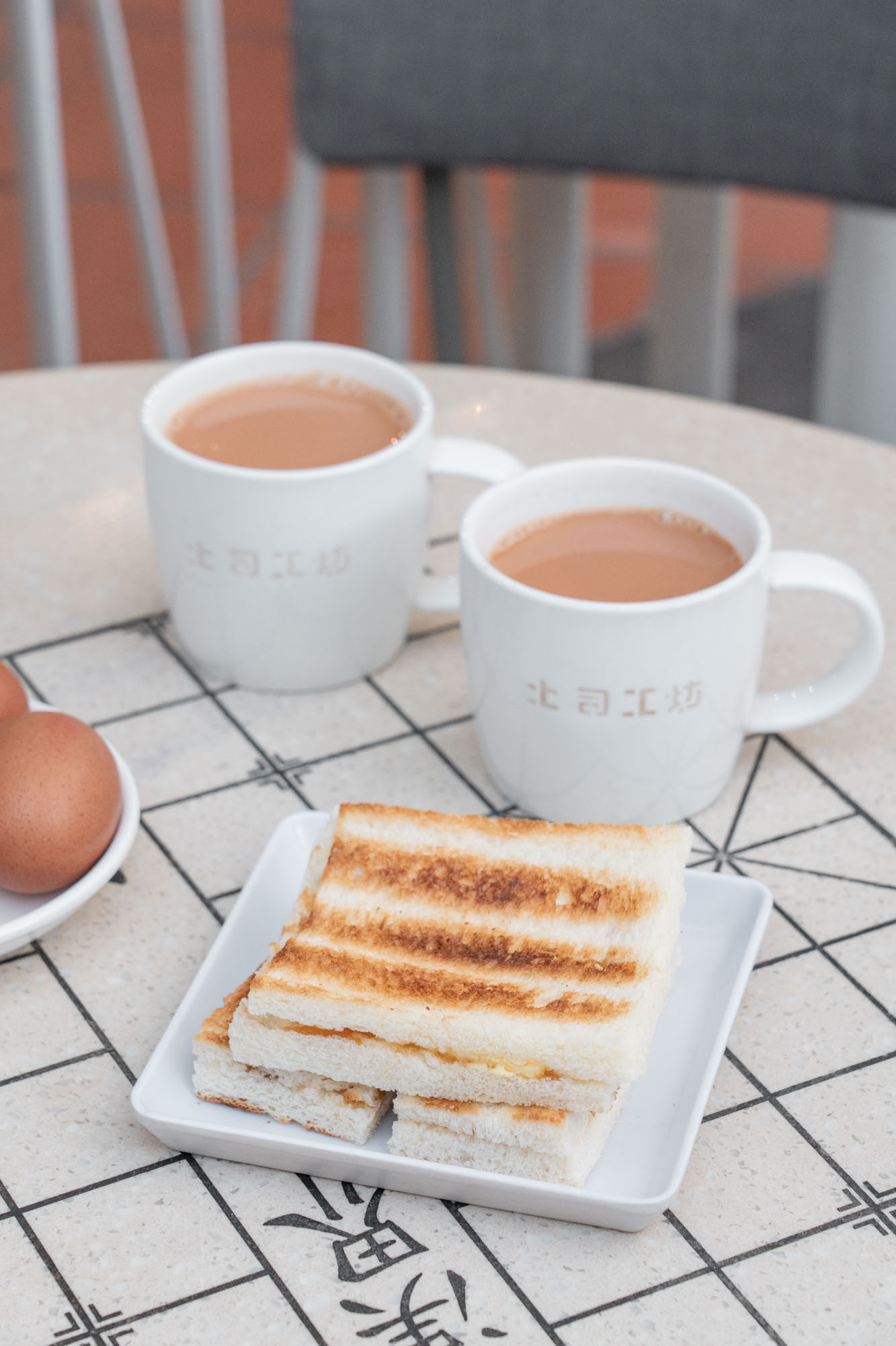 半熟蛋敲開倒入盤中,淋上醬油和胡椒粉,大口吃下去滑嫩又滿足,也能把咖椰吐司沾上蛋液一起吃,增添風味。我習慣來杯熱奶茶,溫順口感配上咖椰吐司是最完美的組合!