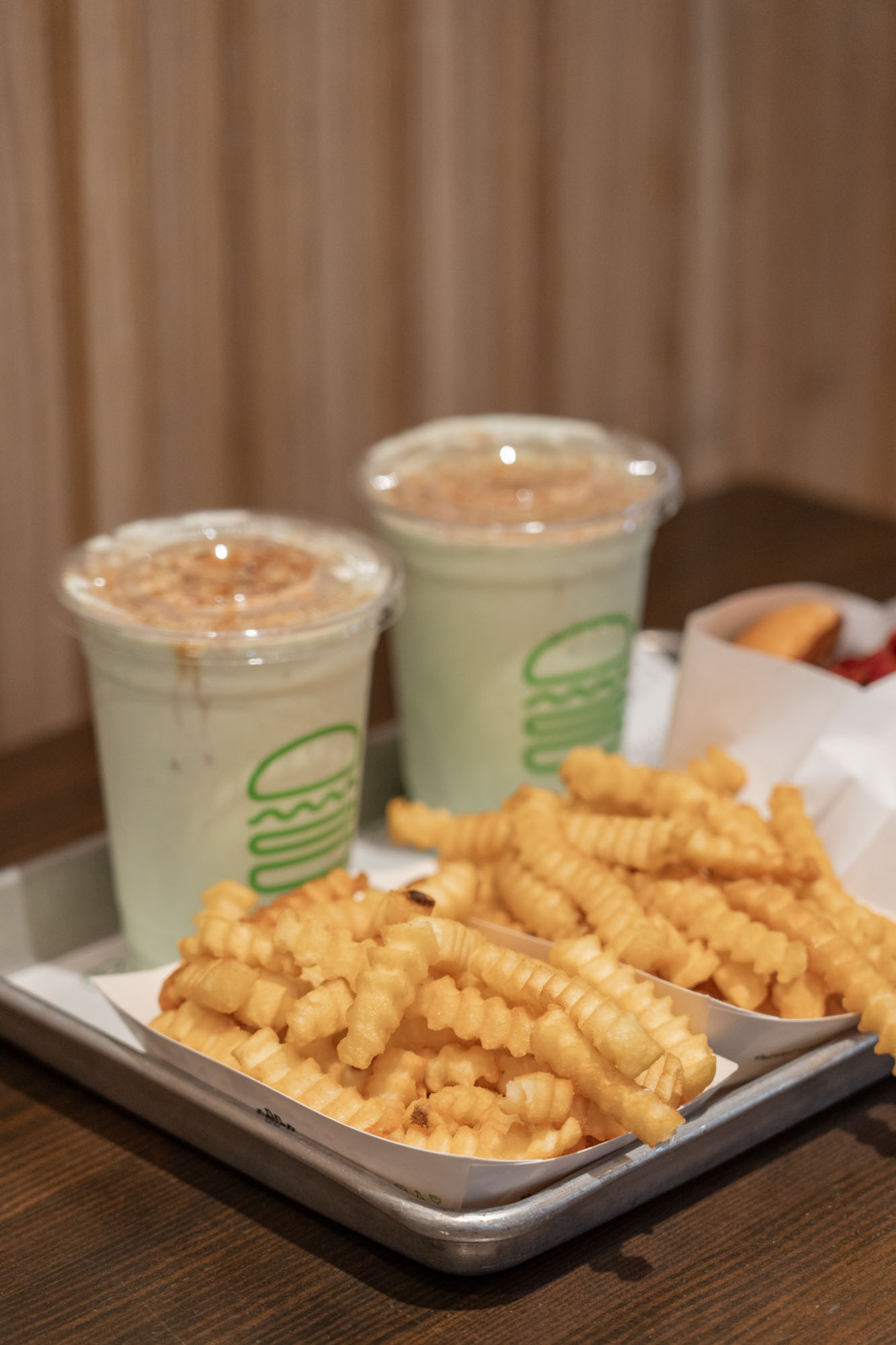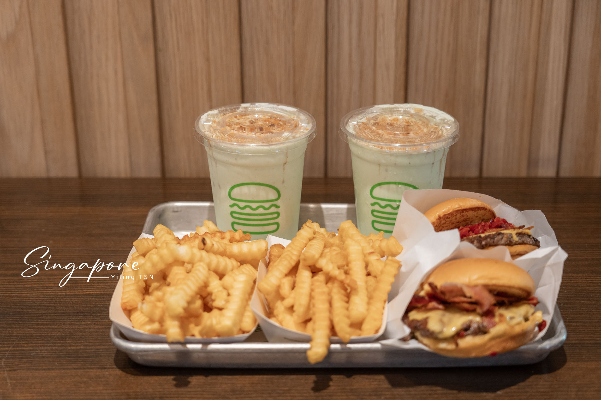 Shake Shack在濱海灣花園、聖淘沙、怡豐城和新達城等各大景點和購物中心都有據點,這次我來到新達城分店,以木質調搭配簡約線條,氣氛明亮又有活力。