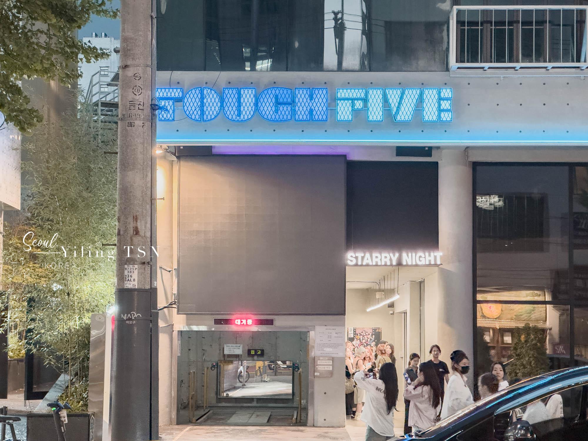 Touch Five表演場館在弘大,從弘大站和上水站走過來都是大約10分鐘,不論是開演前或結束後都能在弘大商圈走走逛逛吃吃喝喝。一來到大樓外側就能見到六位猛男大大的看板,結束後的下班路合照也都會經過此區。
