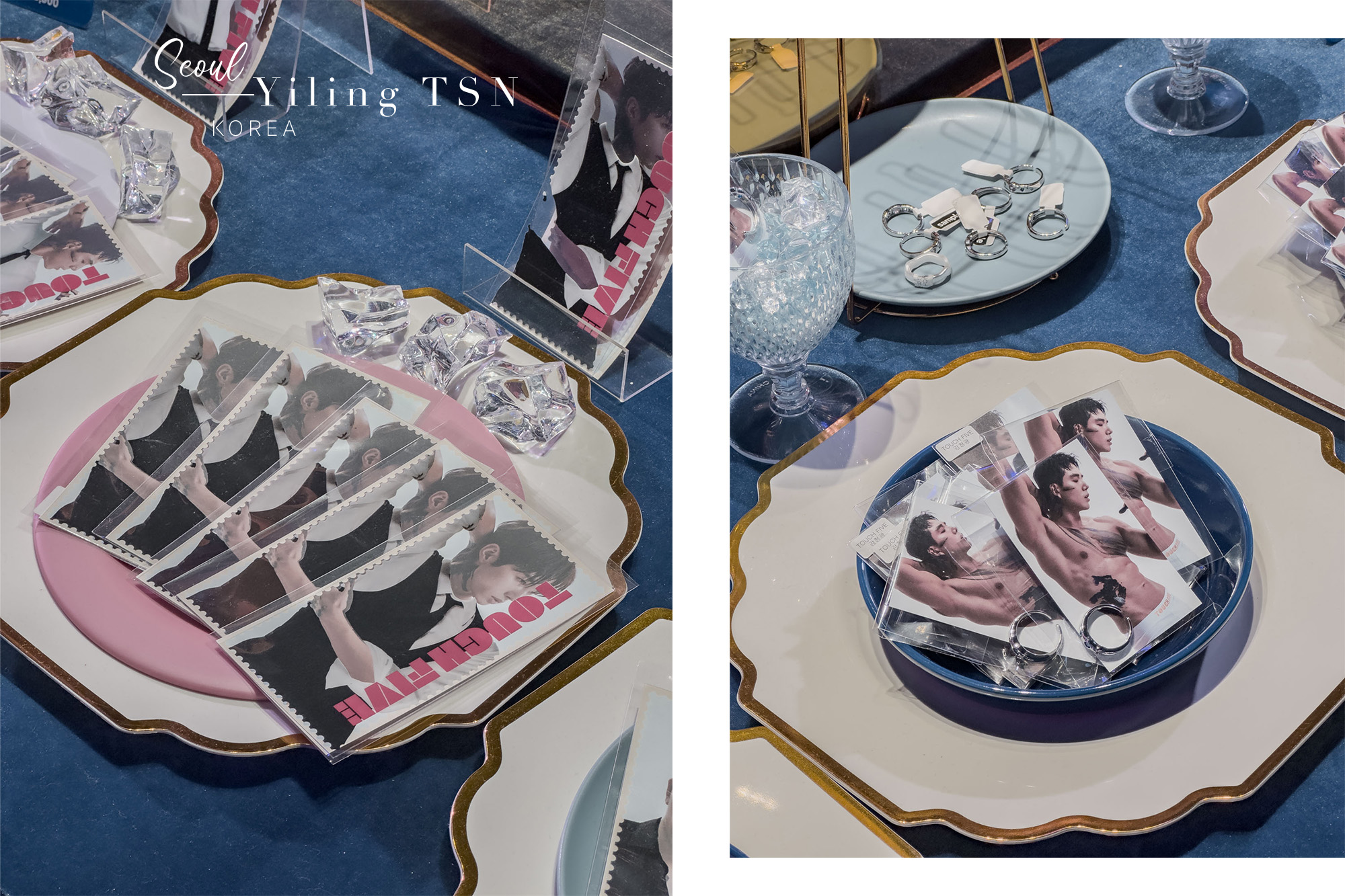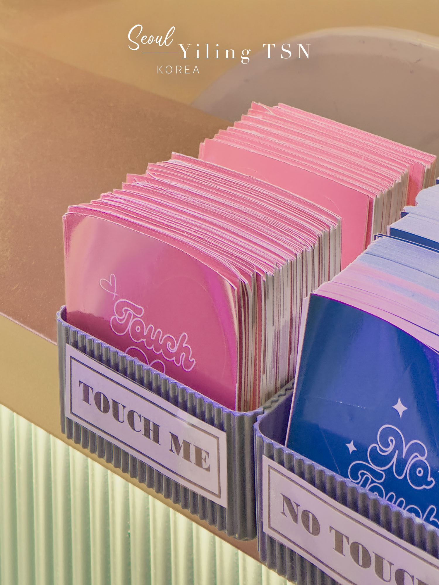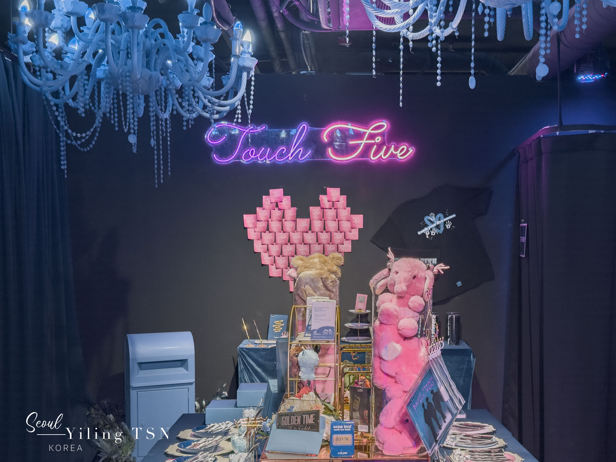 整個休息區以黑色和螢光粉紅為主,販售照片小卡等周邊商品。也有設置拍照區域,不過這光線實在有點可怕,還是買合照券或是等下班路自拍比較實在。