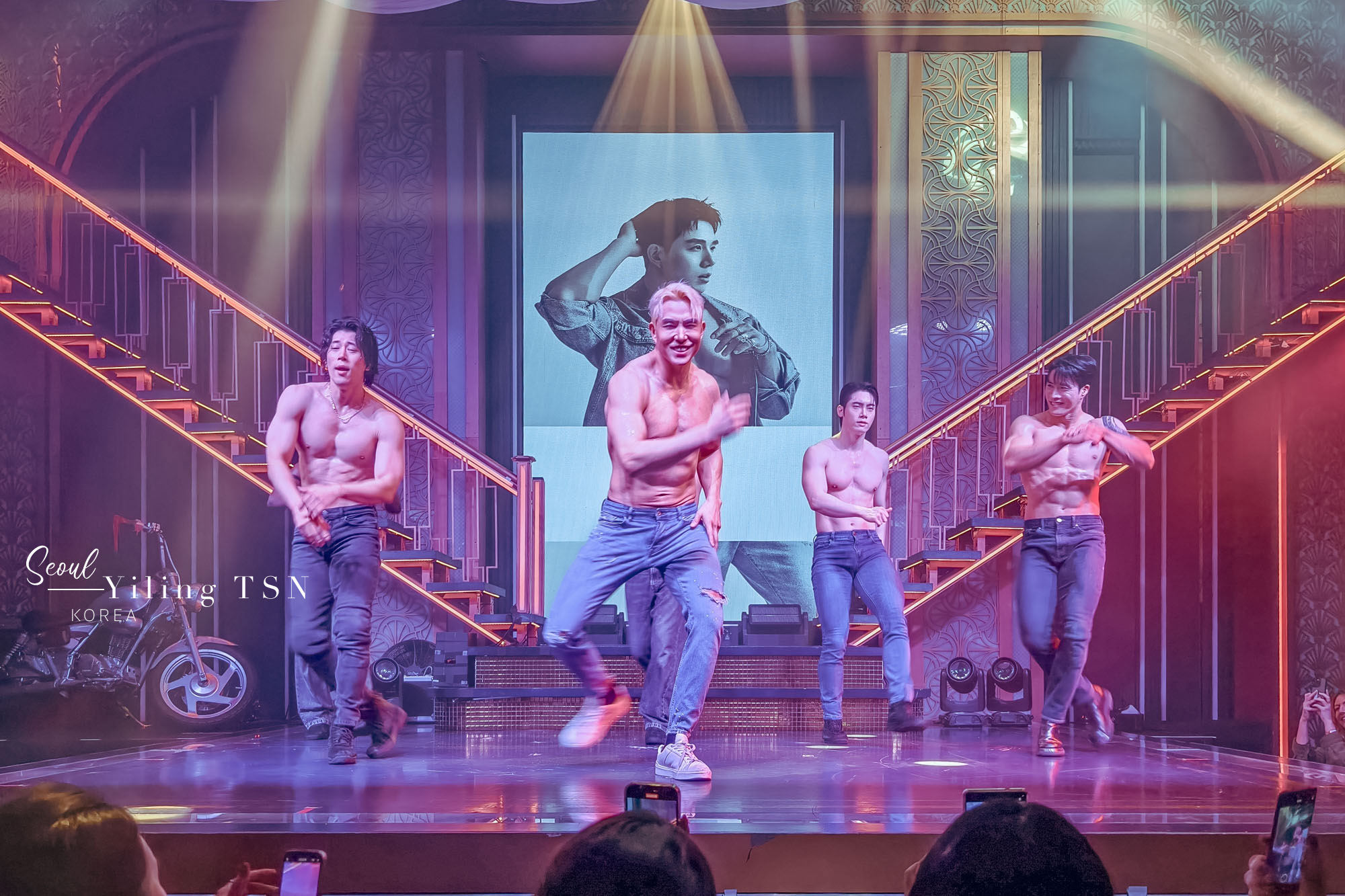 六位猛男每場都演出沒有輪班,每一位都是超壯的體個,不僅上半身有超大塊肌肉,連大腿都會冒青筋的狀,特色明確很好分辨,才出場不到五分鐘我就能認出所有人。至於舞蹈方面是真的能力很強,核心厲害筋骨也柔軟,可以看出是多年練舞所累積的。
