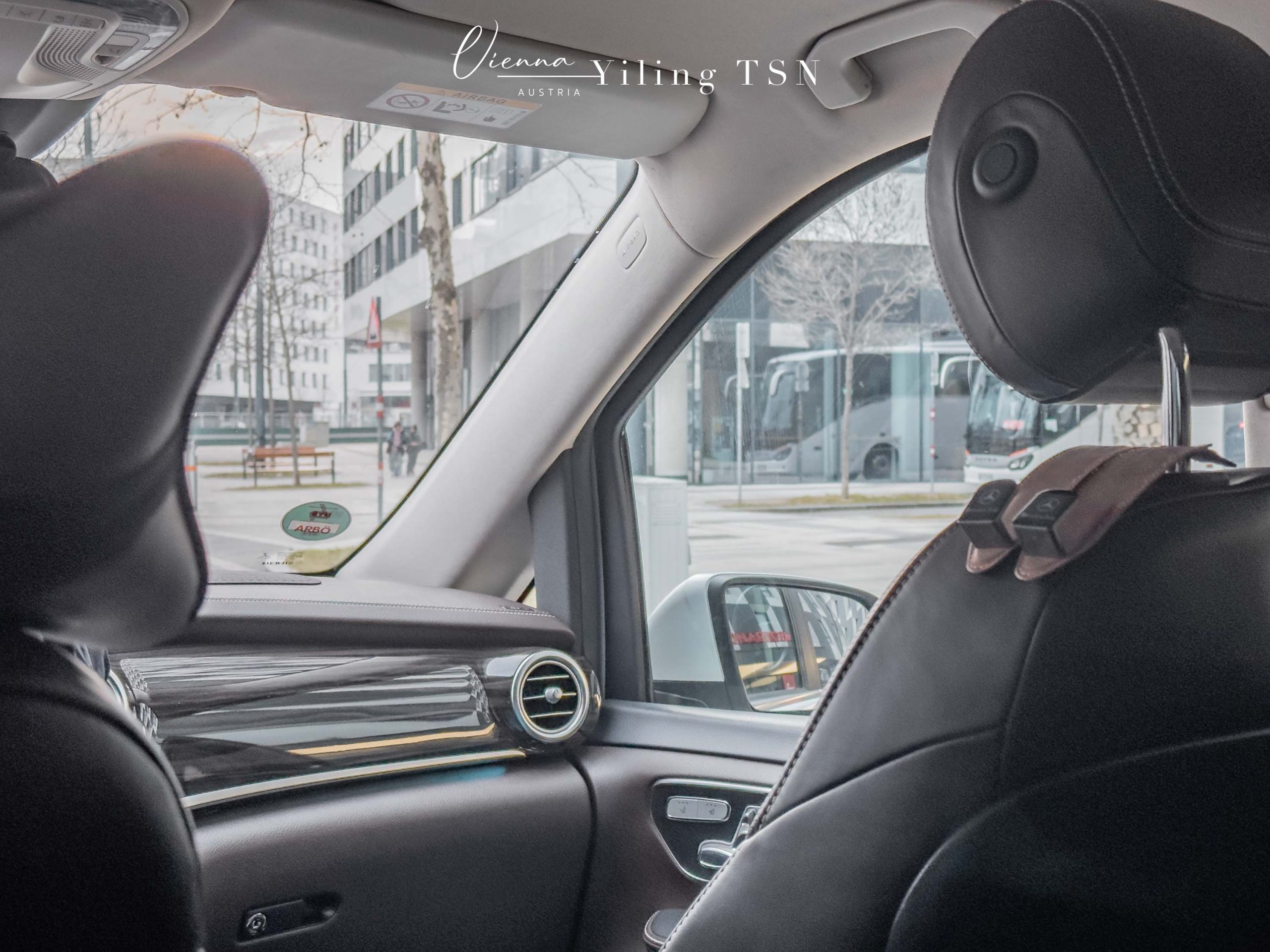 看到熟悉的賓士品牌,忍不住在心裡想著真的來到奧地利了!這幾天歐洲都下著大雪,車子外觀難免沾上泥濘稍稍髒了些,但內裝可是整理得蠻乾淨的。