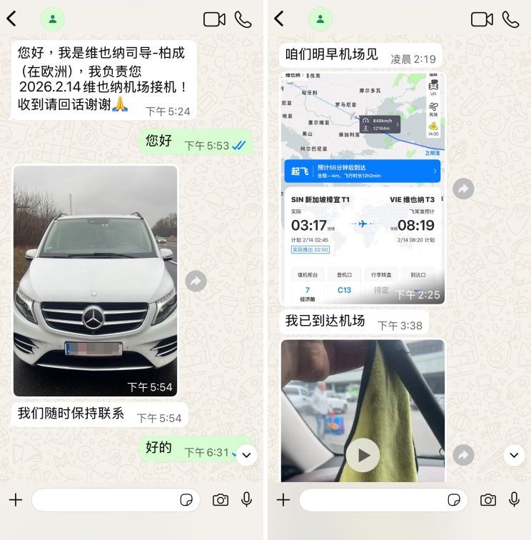 這次我是直接從KKday預約,下單後平台客服先做初步預約資訊確認,大約在出發前三天,當地司機會主動加Line或WhatsApp等通訊軟體,親自和我們確認航班資訊和車牌號碼,都是全中文溝通,不用擔心語言障礙。當天抵達維也納機場,才剛落地打開手機,就已經收到司機的關心訊息,讓人感到放心。(KKday 預約)